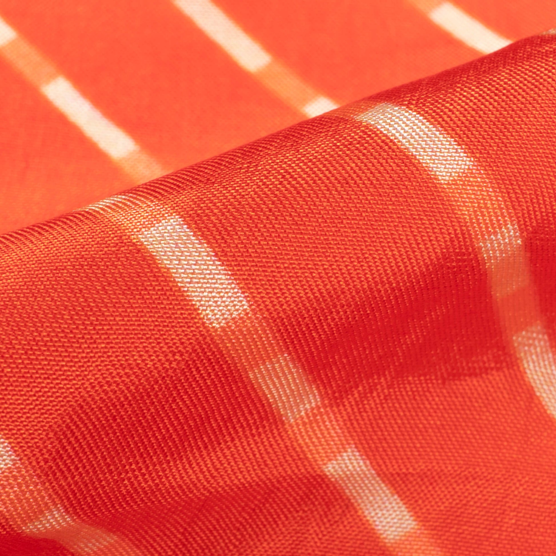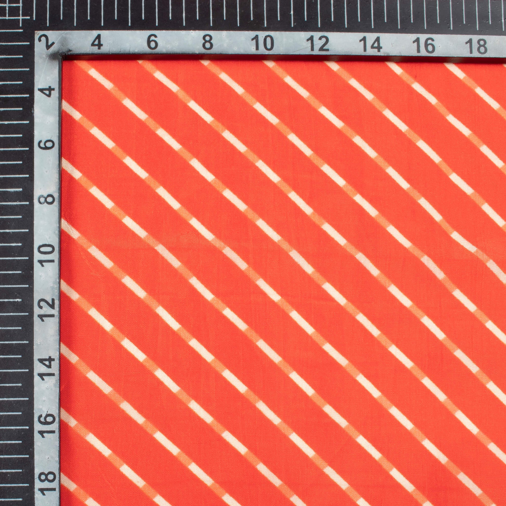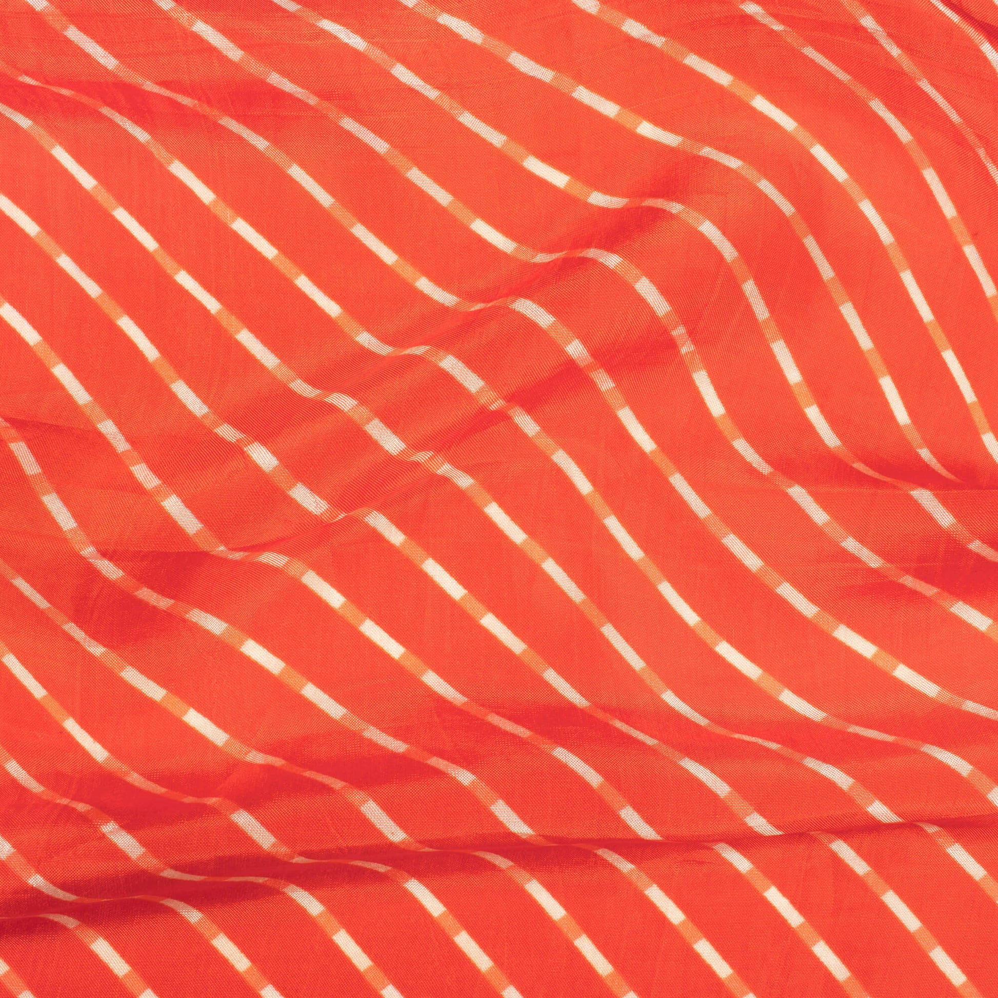 Burnt Orange And White Leheriya Pattern Digital Print Viscose Uppada Silk Fabric