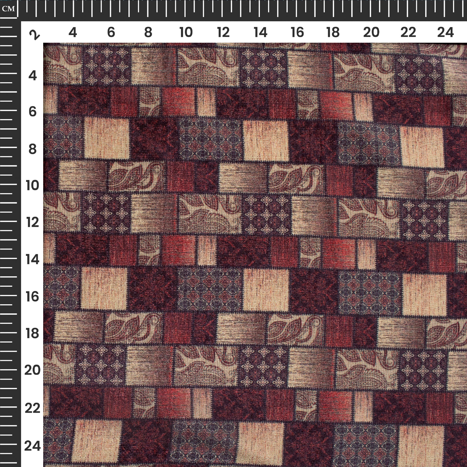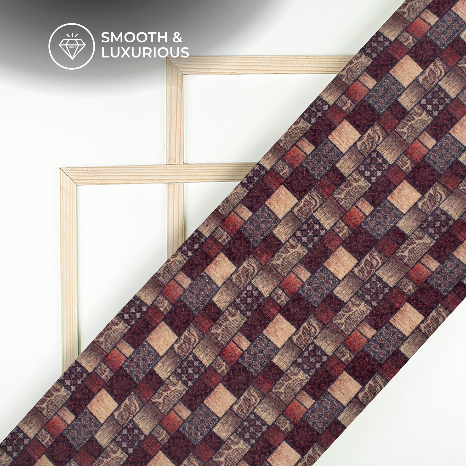 Burnt Umber Checks Digital Print Viscose Uppada Silk Fabric