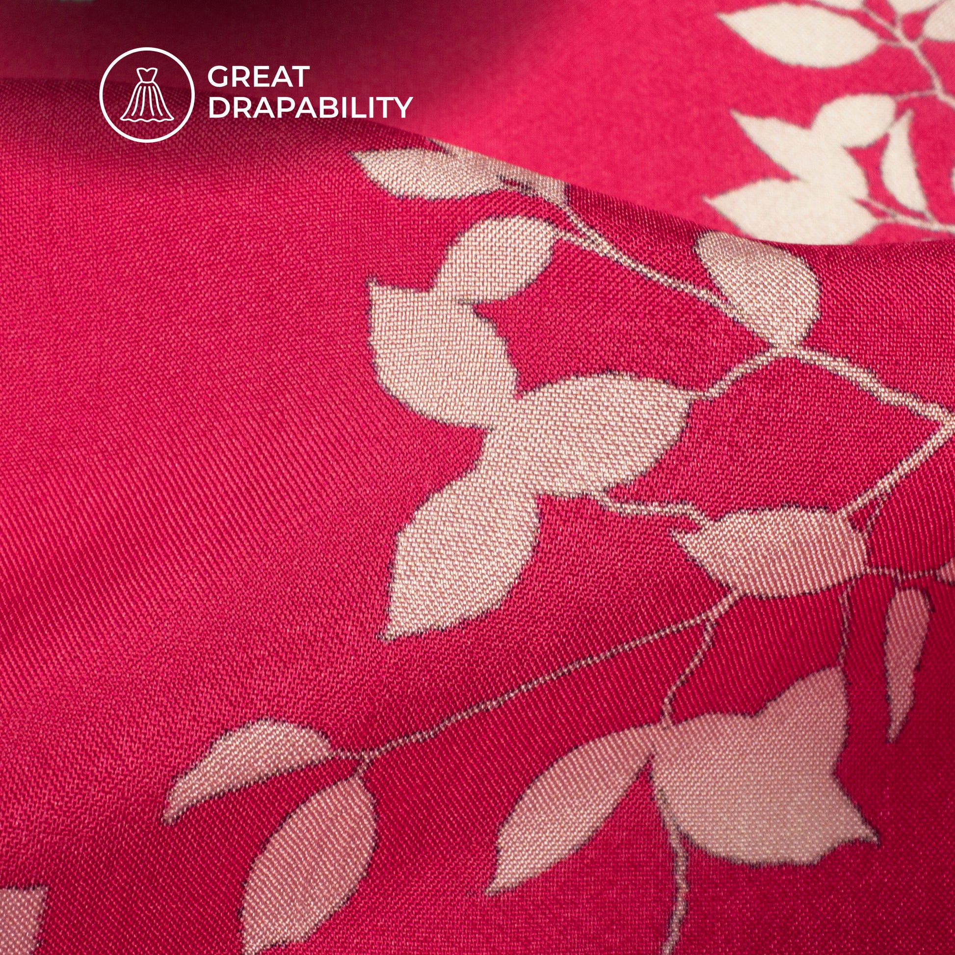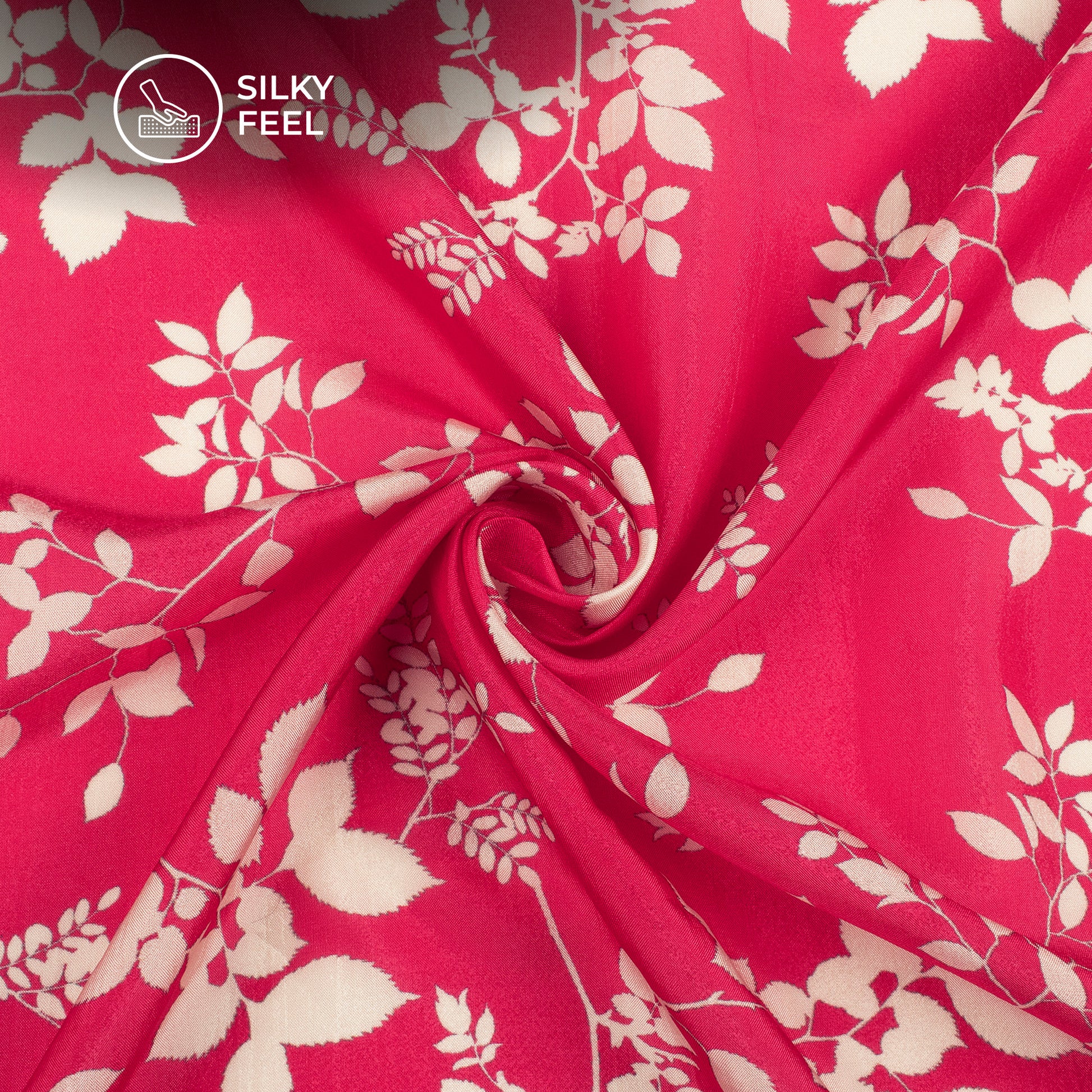 Cardinal Red Floral Digital Print Viscose Uppada Silk Fabric