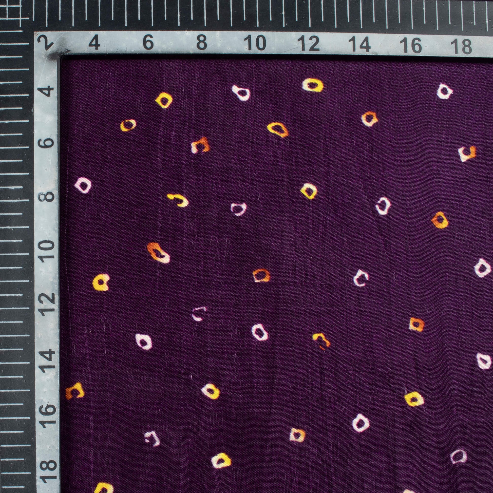 Dark Purple And Corn Yellow Bandhanii Pattern Digital Print Viscose Uppada Silk Fabric