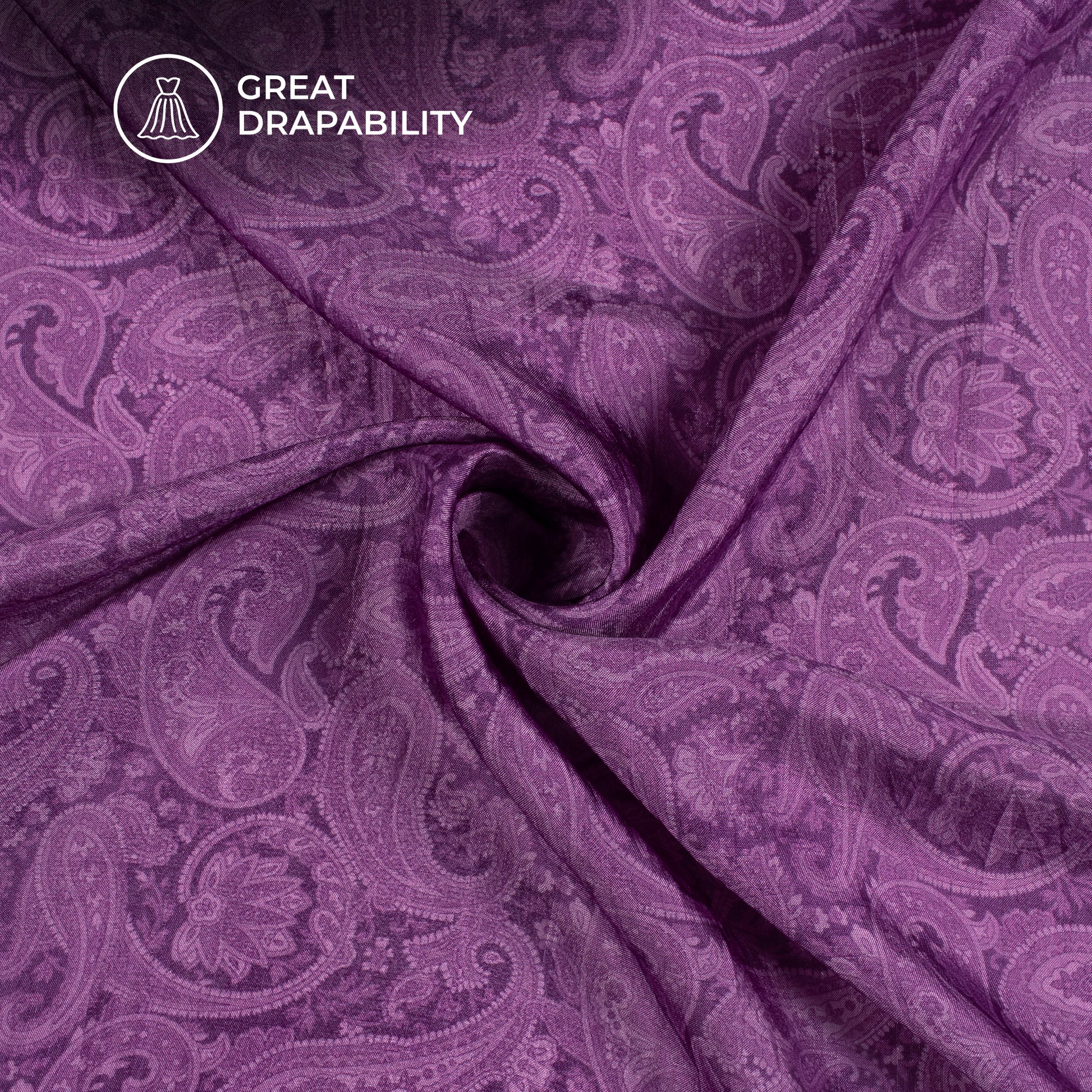 Dark Purple Paisley Digital Print Viscose Uppada Silk Fabric