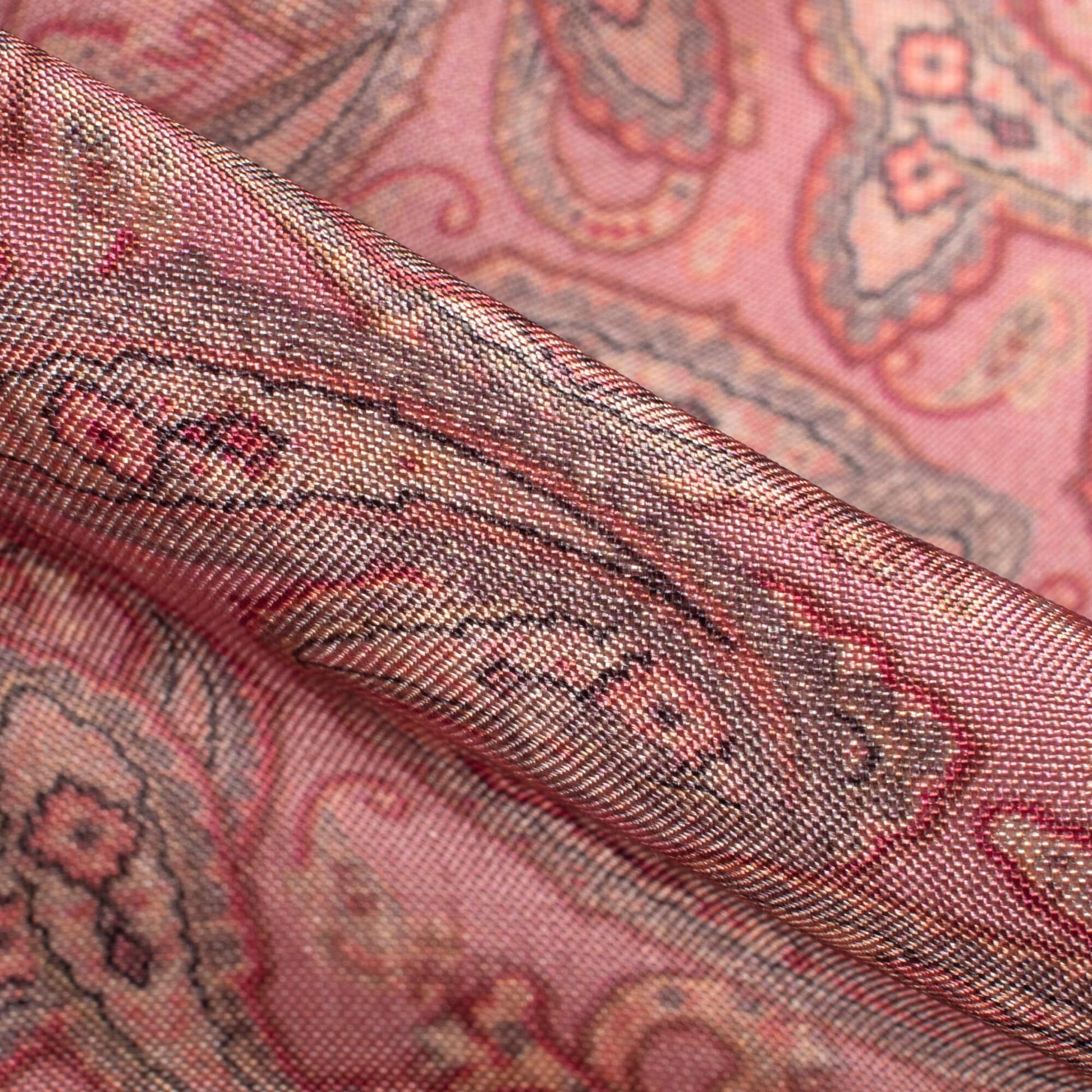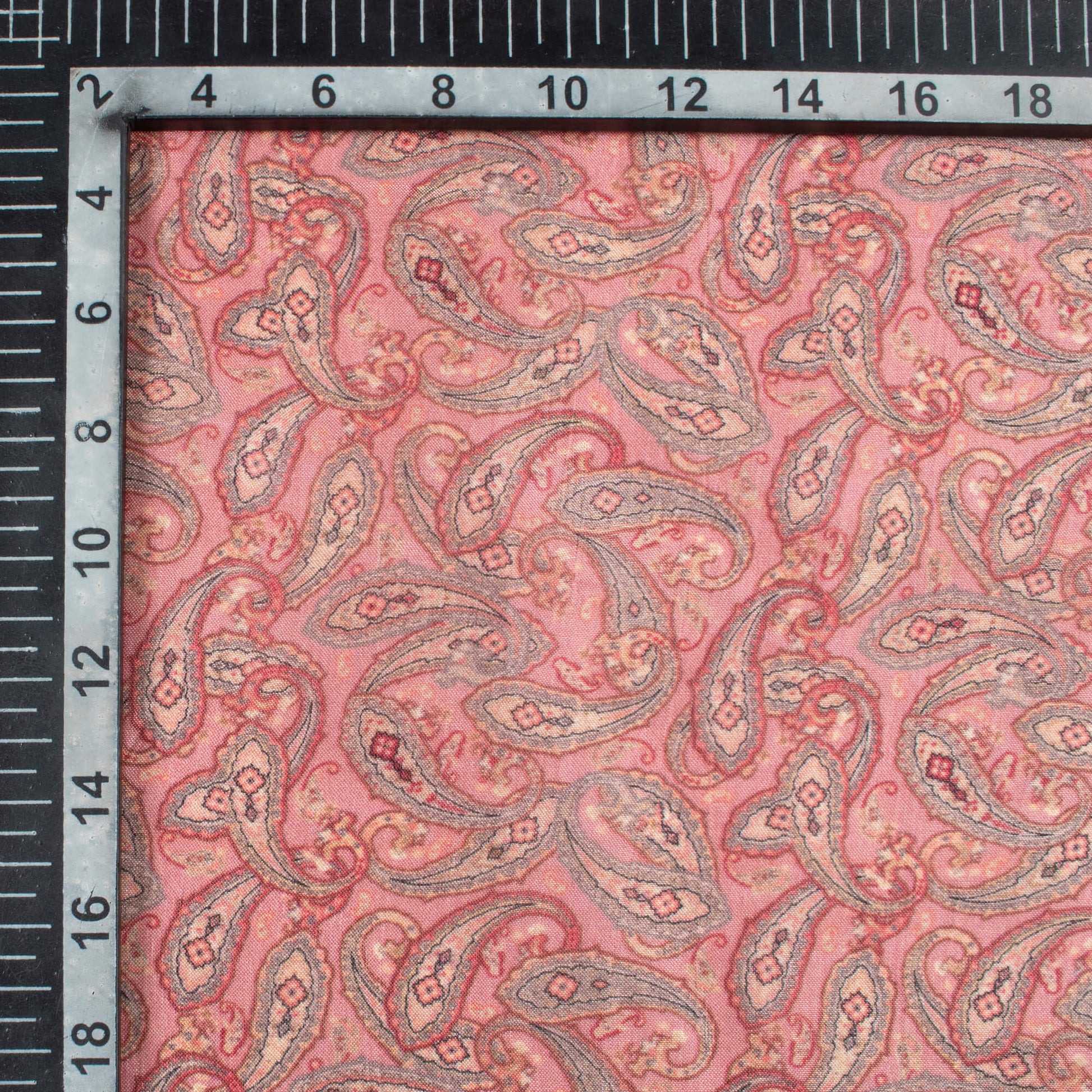 Dusty Pink And Seal Grey Paisley Pattern Digital Print Viscose Uppada Silk Fabric