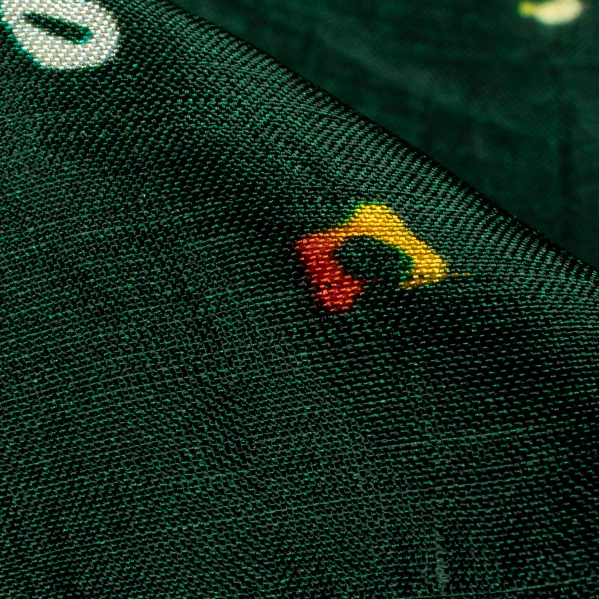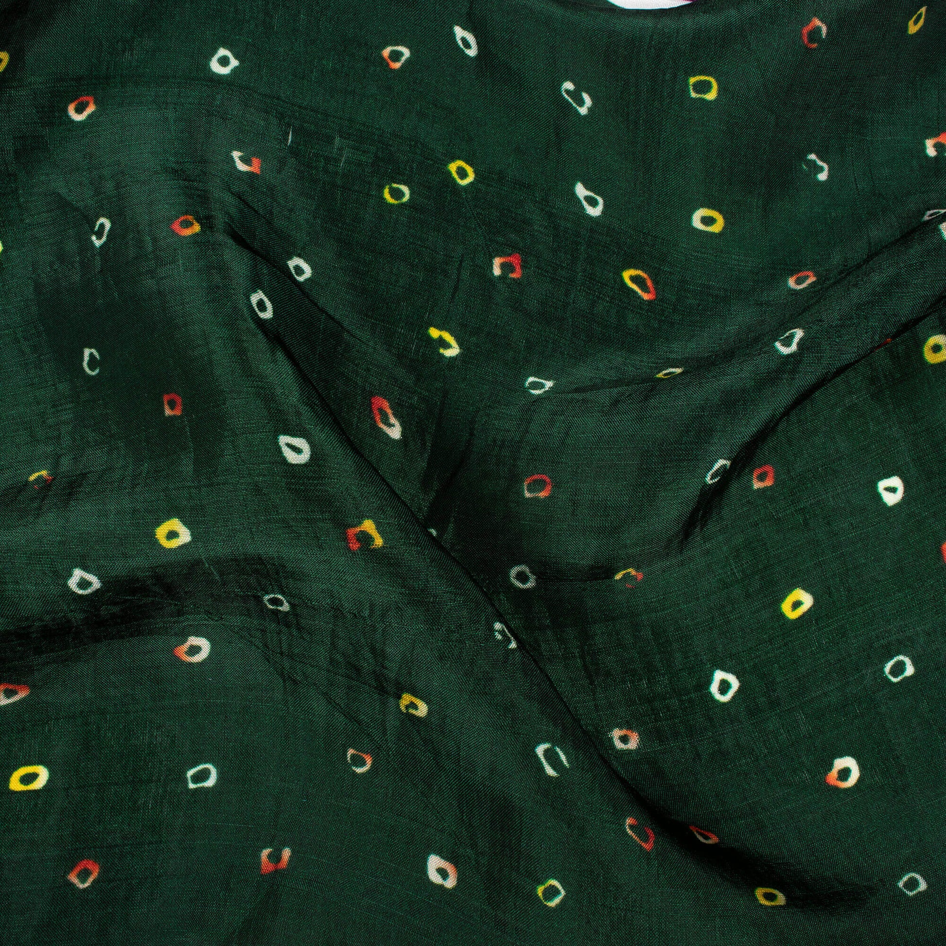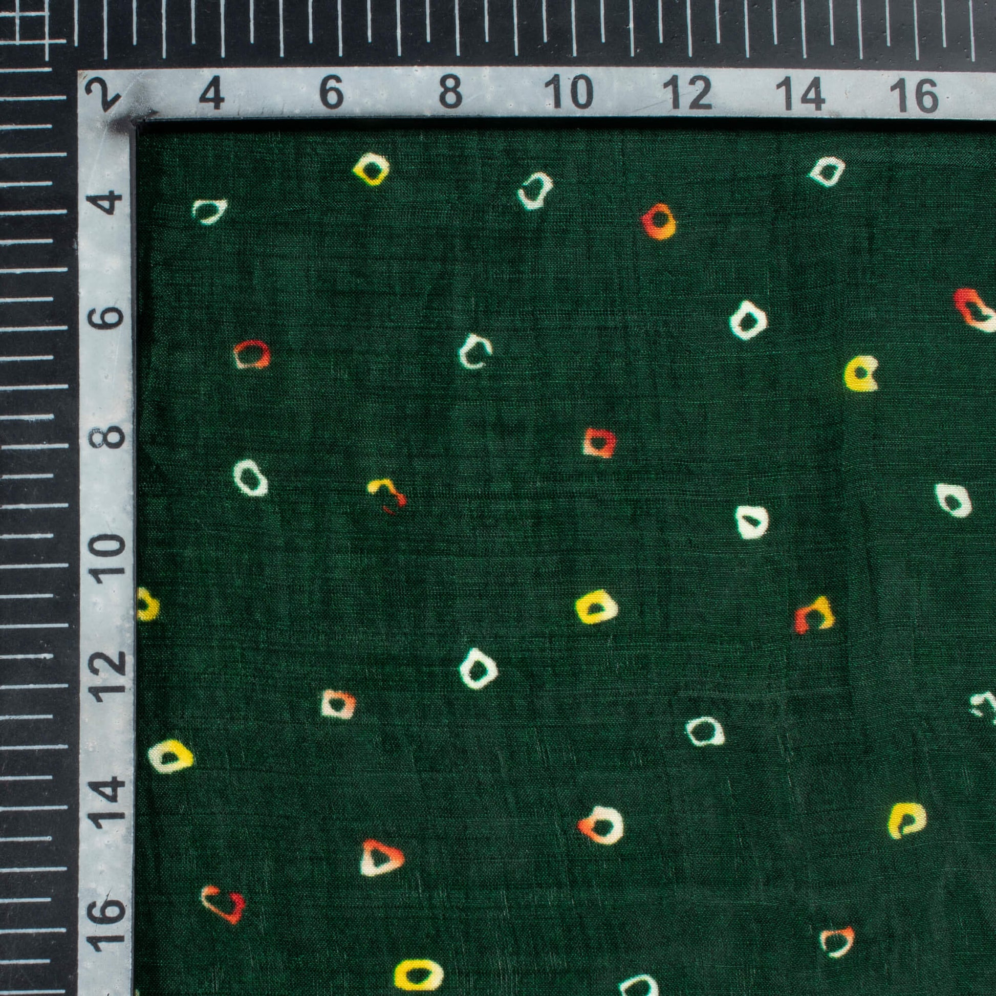Forest Green And Corn Yellow Bandhanii Pattern Digital Print Viscose Uppada Silk Fabric