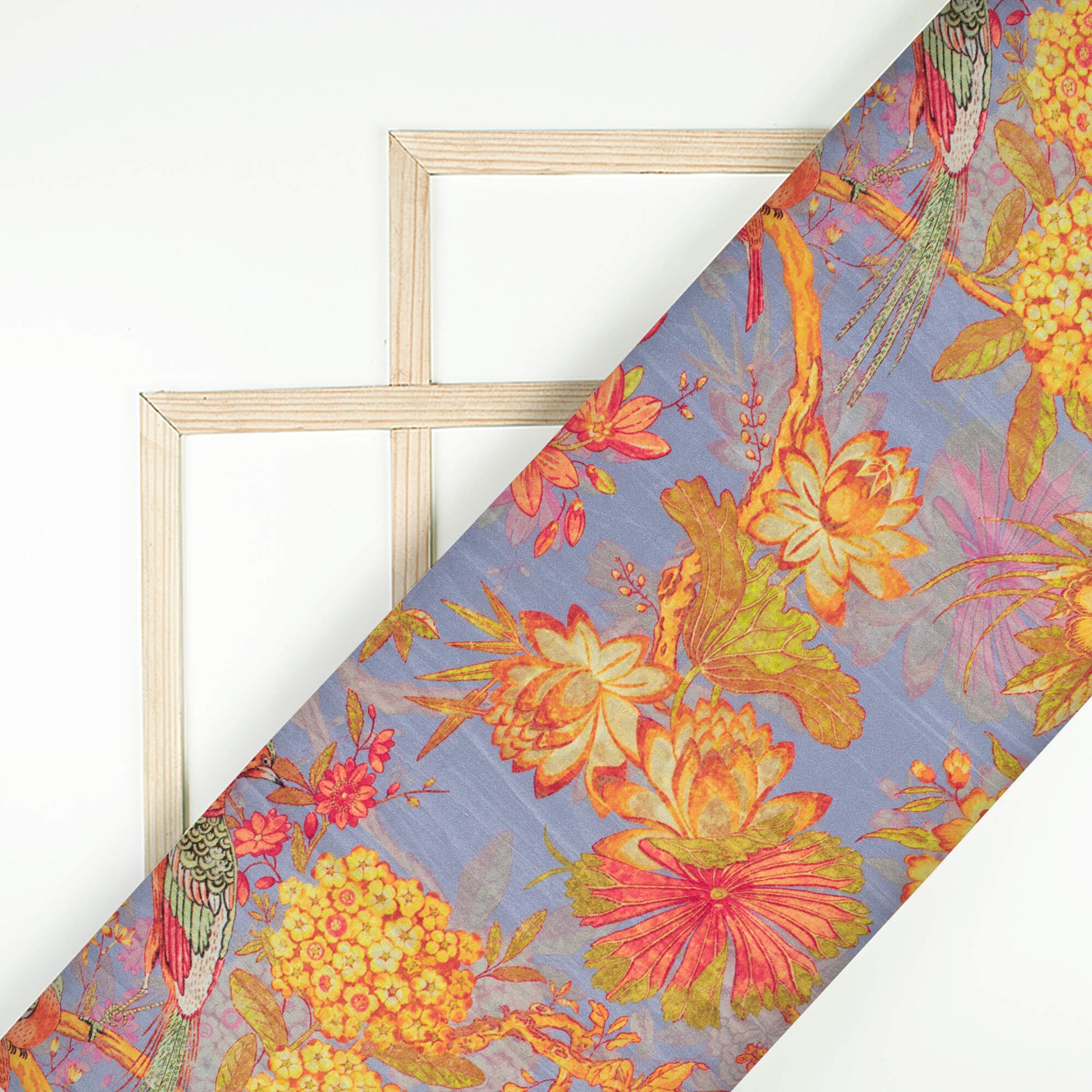 Heather Purple And Laguna Yellow Floral Pattern Digital Print Viscose Uppada Silk Fabric