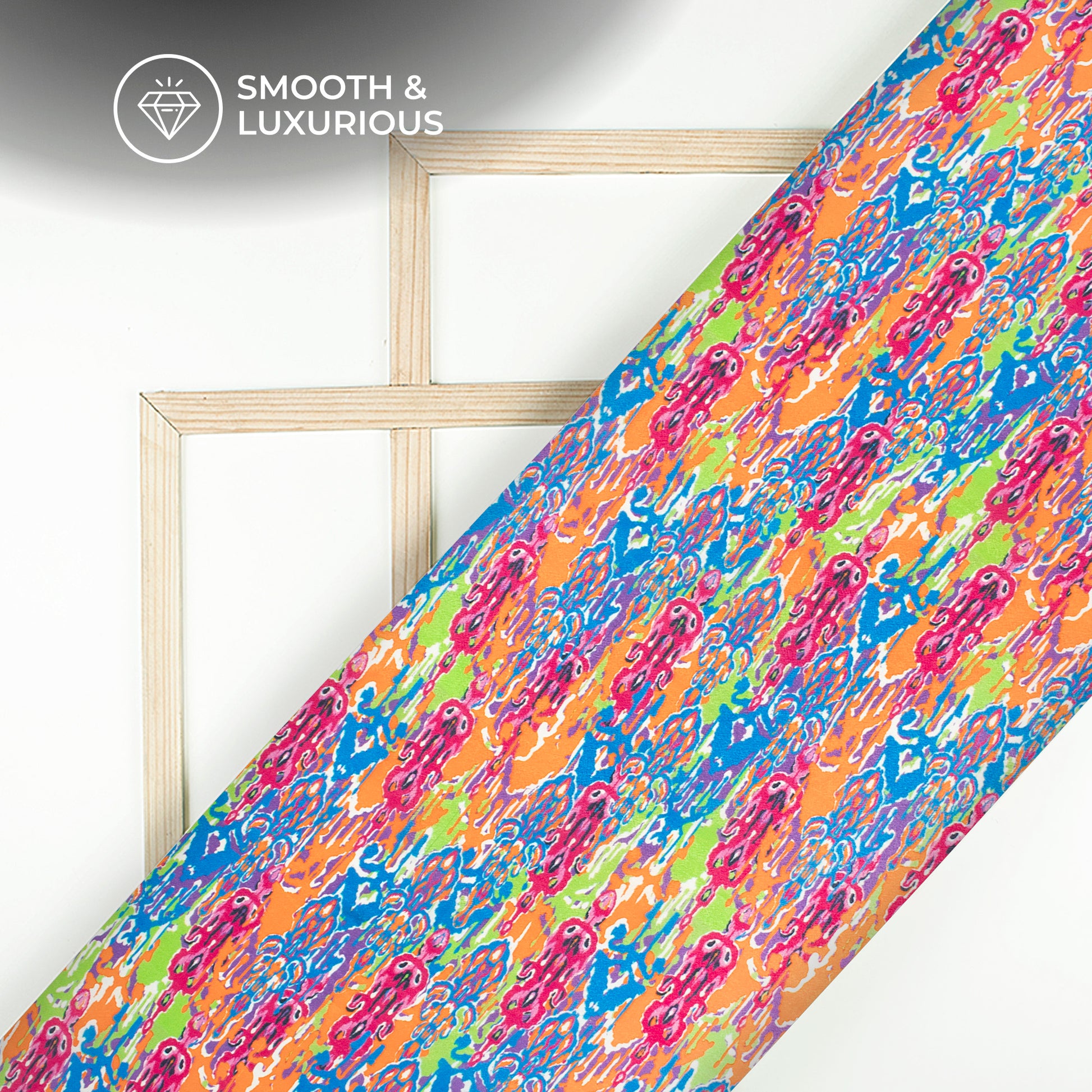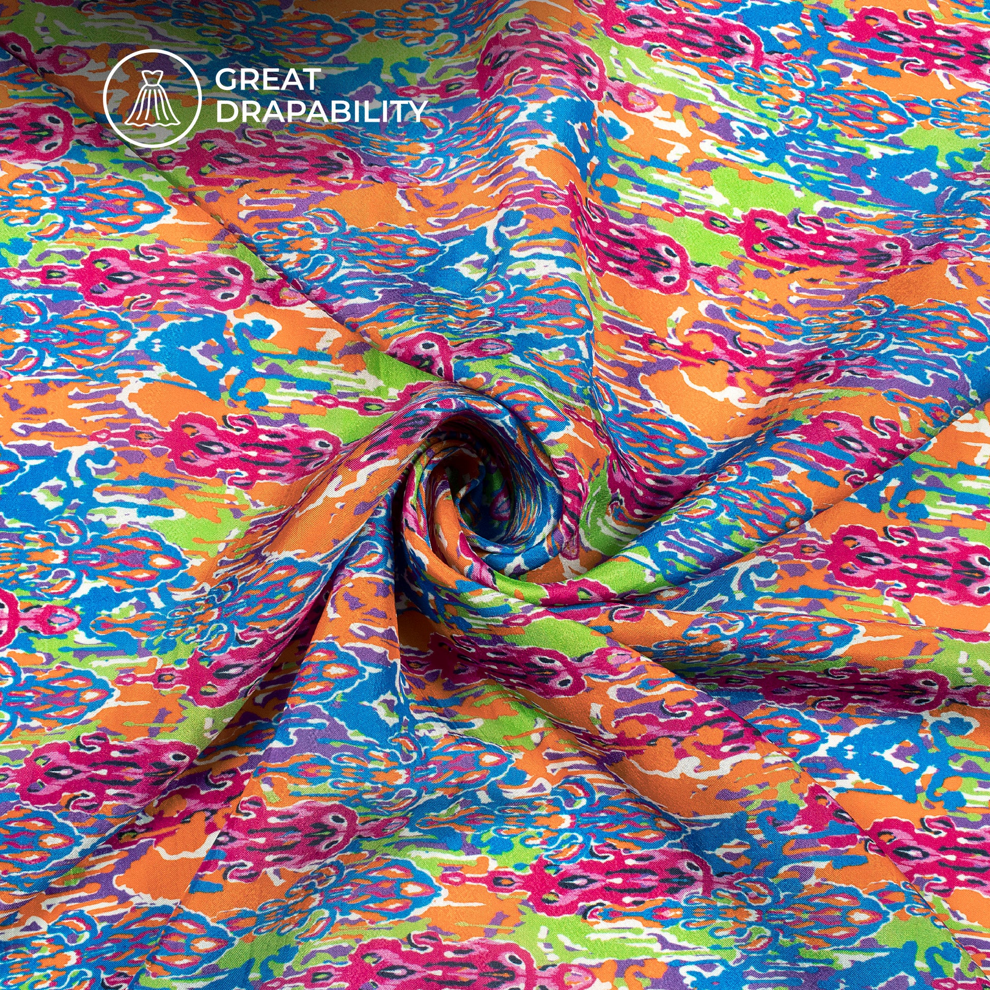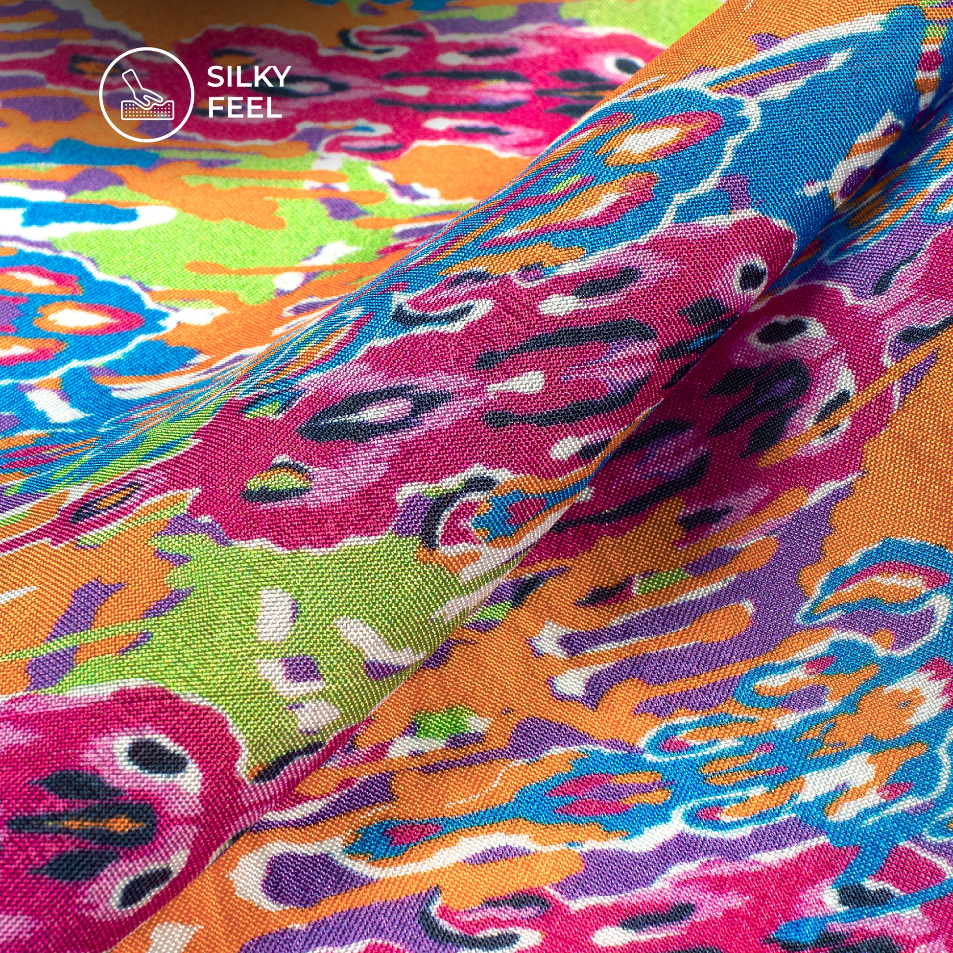Ikkat Inspired Digital Print Viscose Uppada Silk Fabric