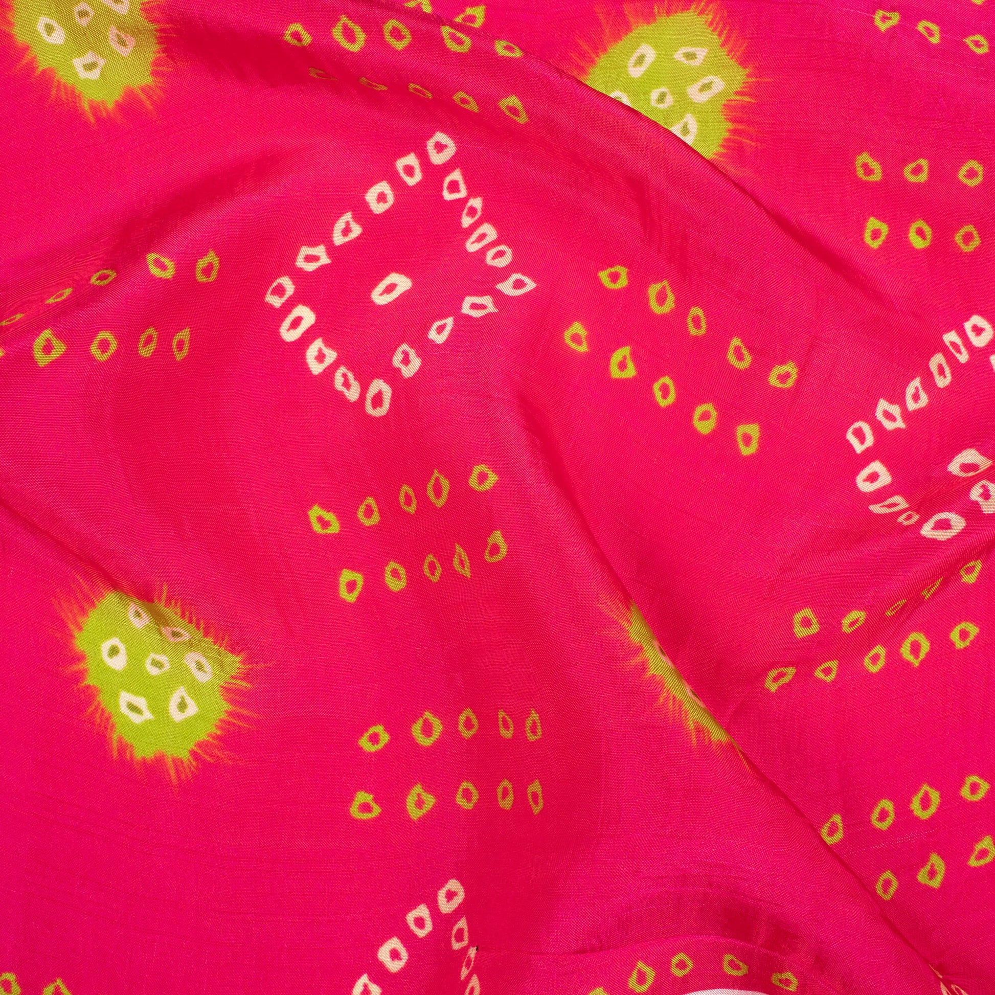 Magenta Pink And Lime Green Bandhanii Pattern Digital Print Viscose Uppada Silk Fabric