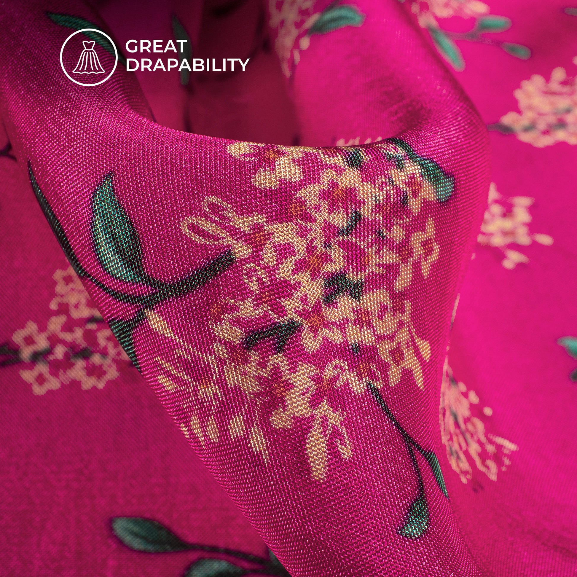 Magenta Pink Floral Digital Print Viscose Uppada Silk Fabric