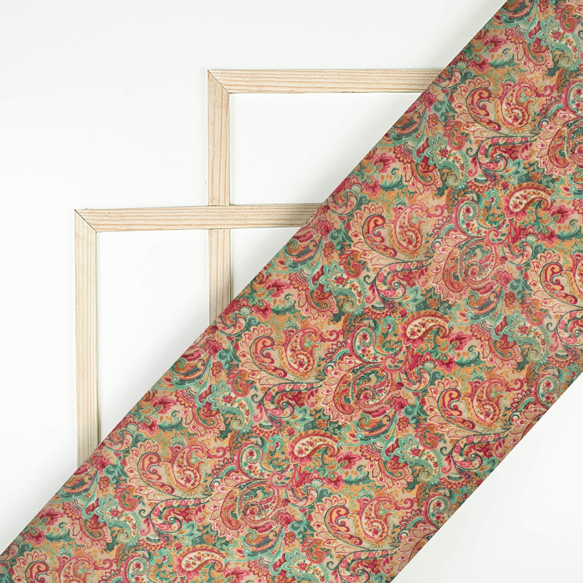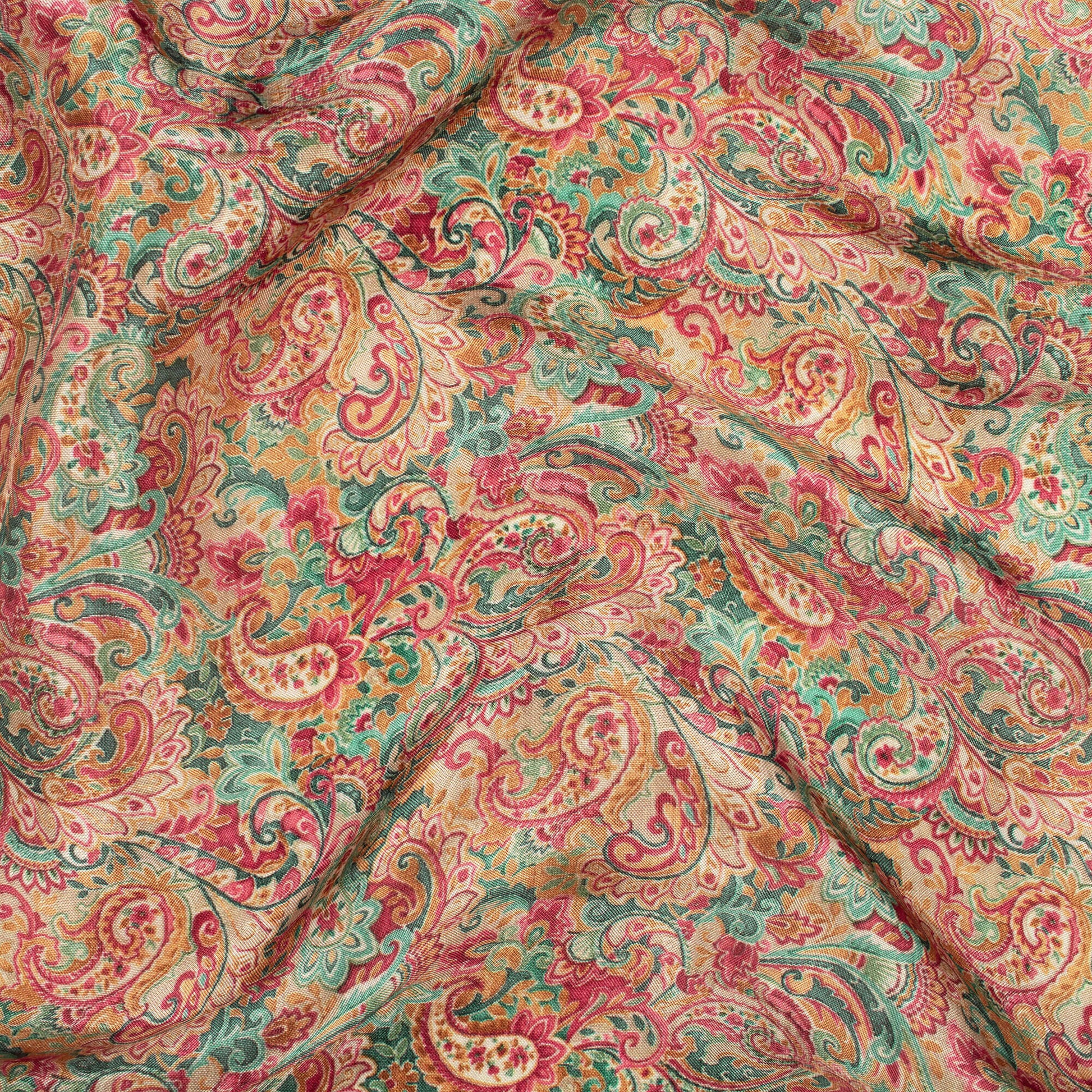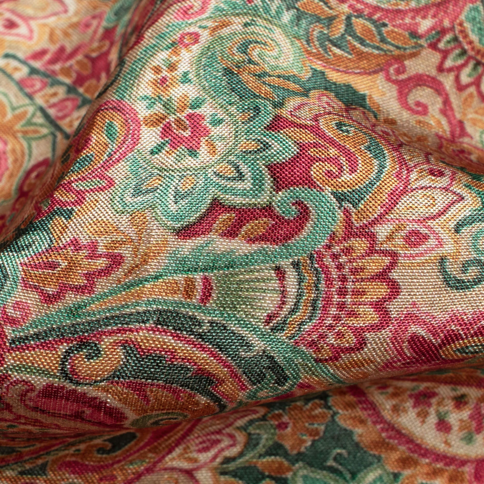 Magenta Purple And Jade Green Ethnic Pattern Digital Print Viscose Uppada Silk Fabric