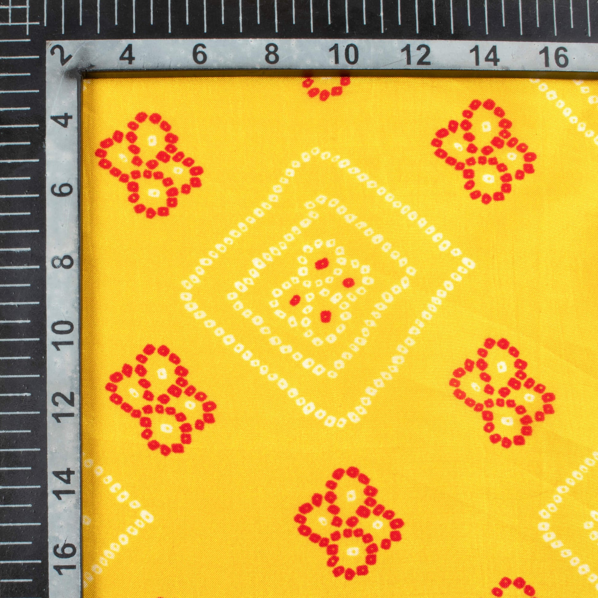 Medallion Yellow And Maroon Bandhanii Pattern Digital Print Viscose Uppada Silk Fabric