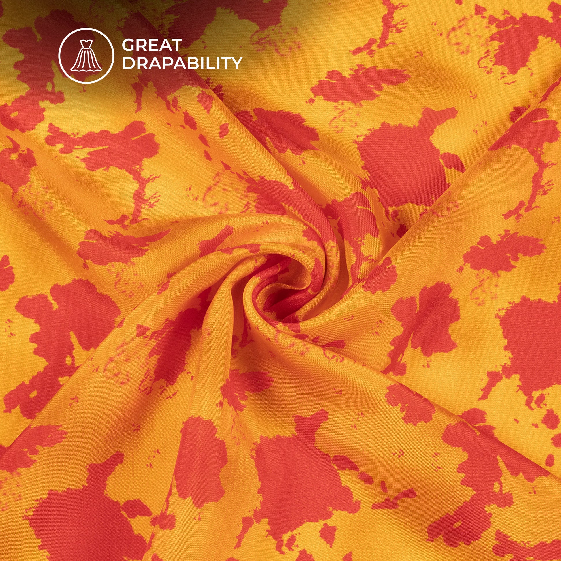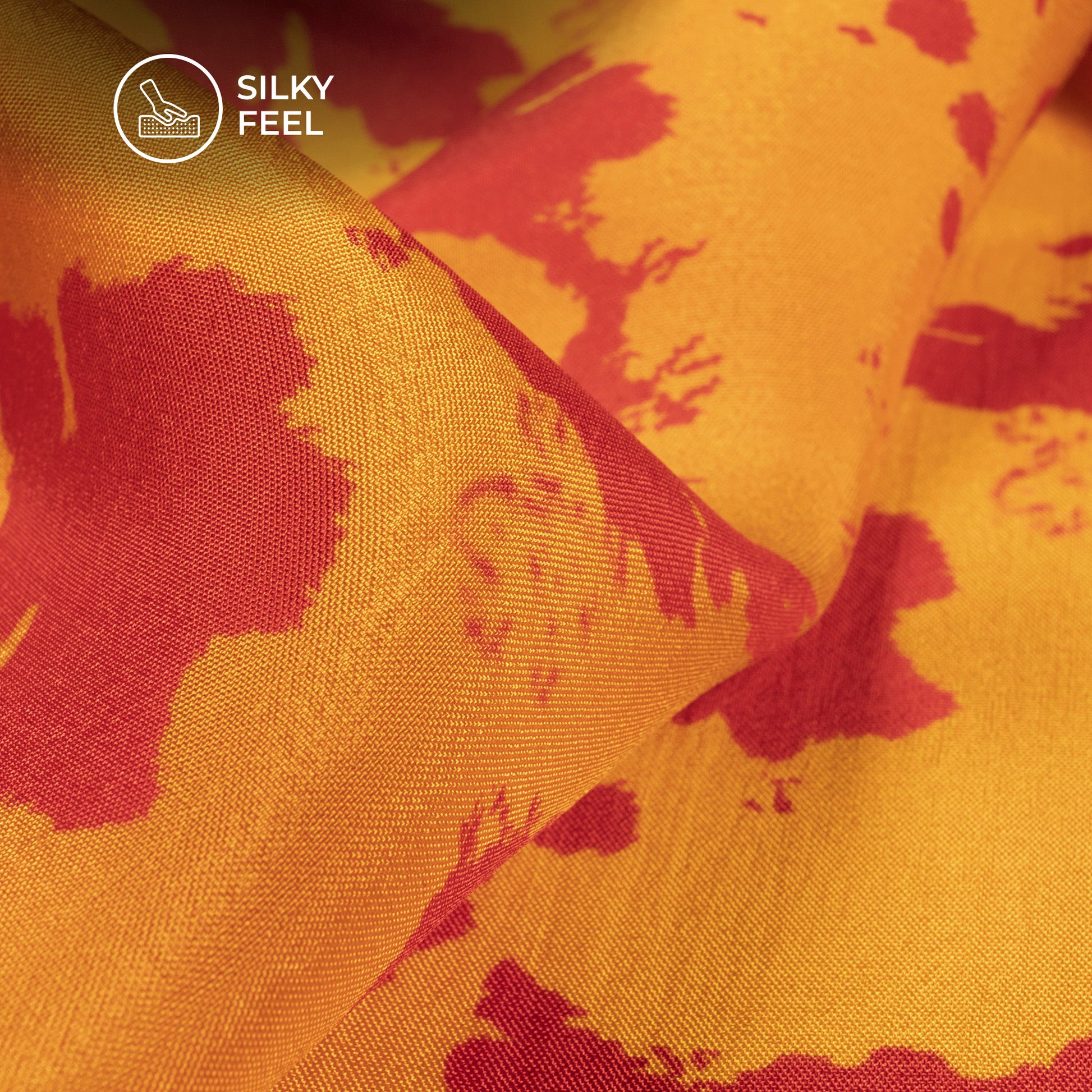Merigold Orange Tie & Dye Digital Print Viscose Uppada Silk Fabric