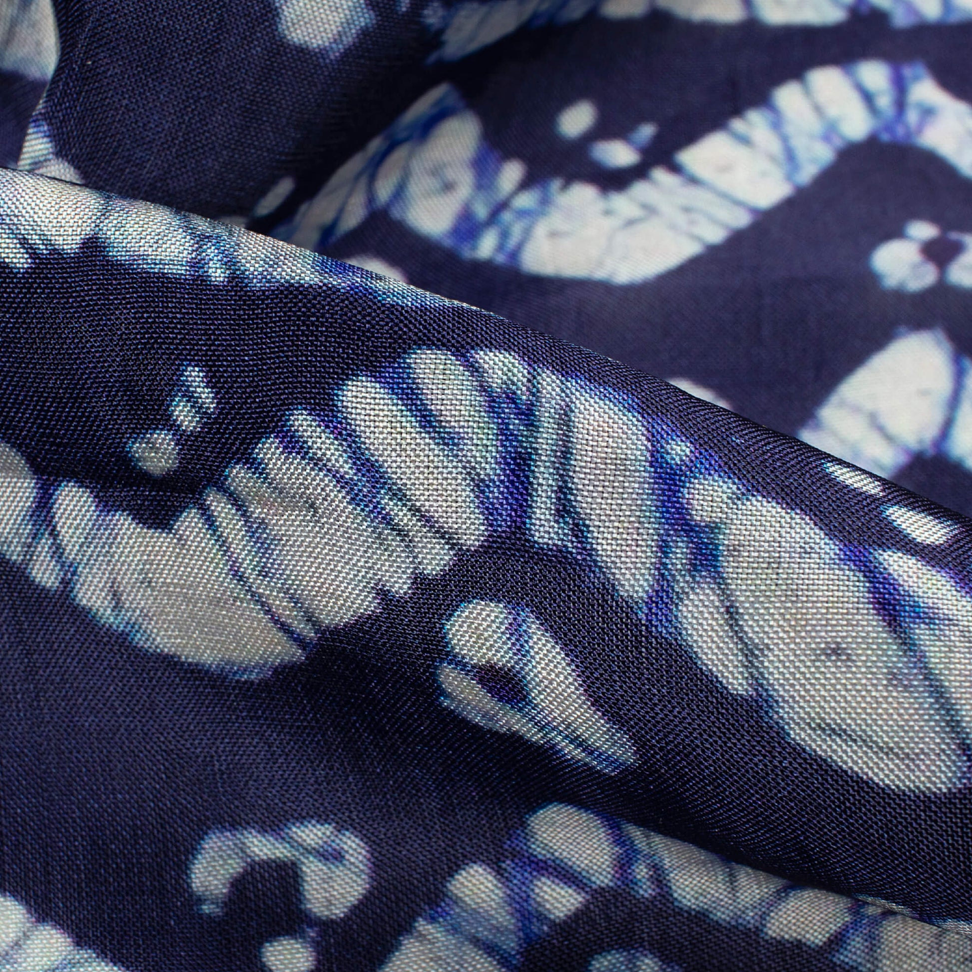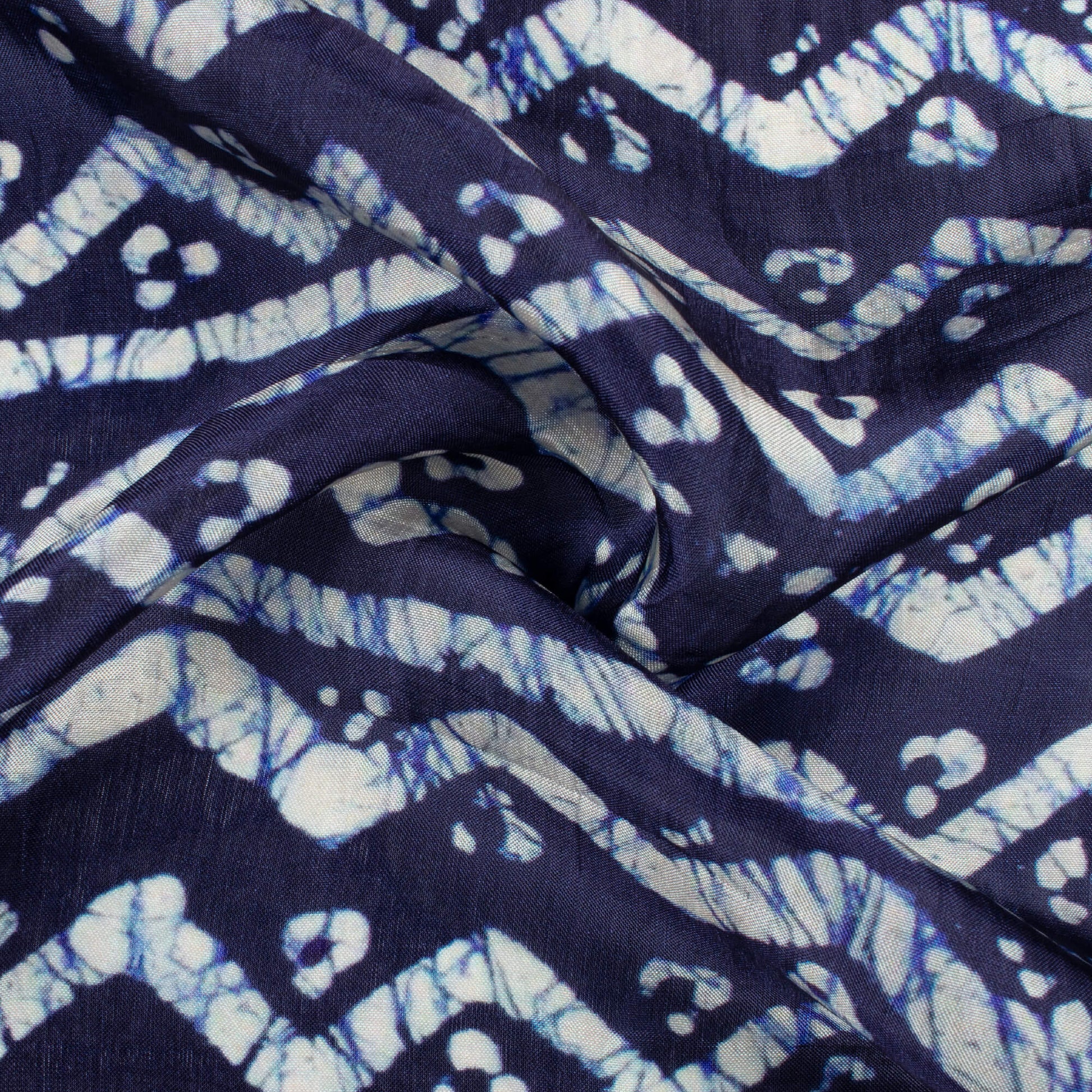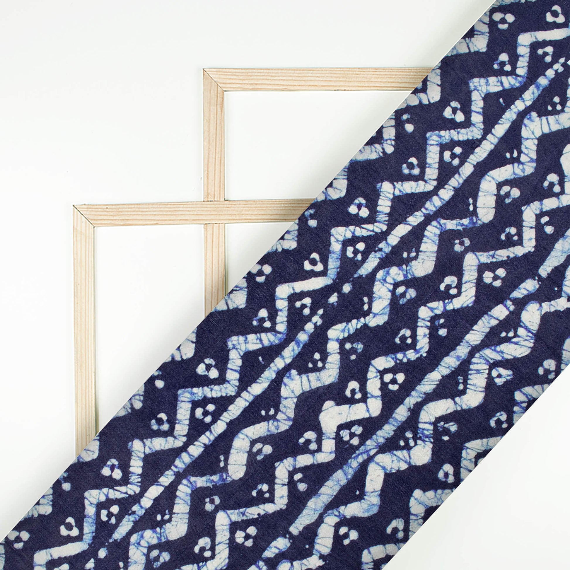 Navy Blue And White Chevron Pattern Digital Print Viscose Uppada Silk Fabric