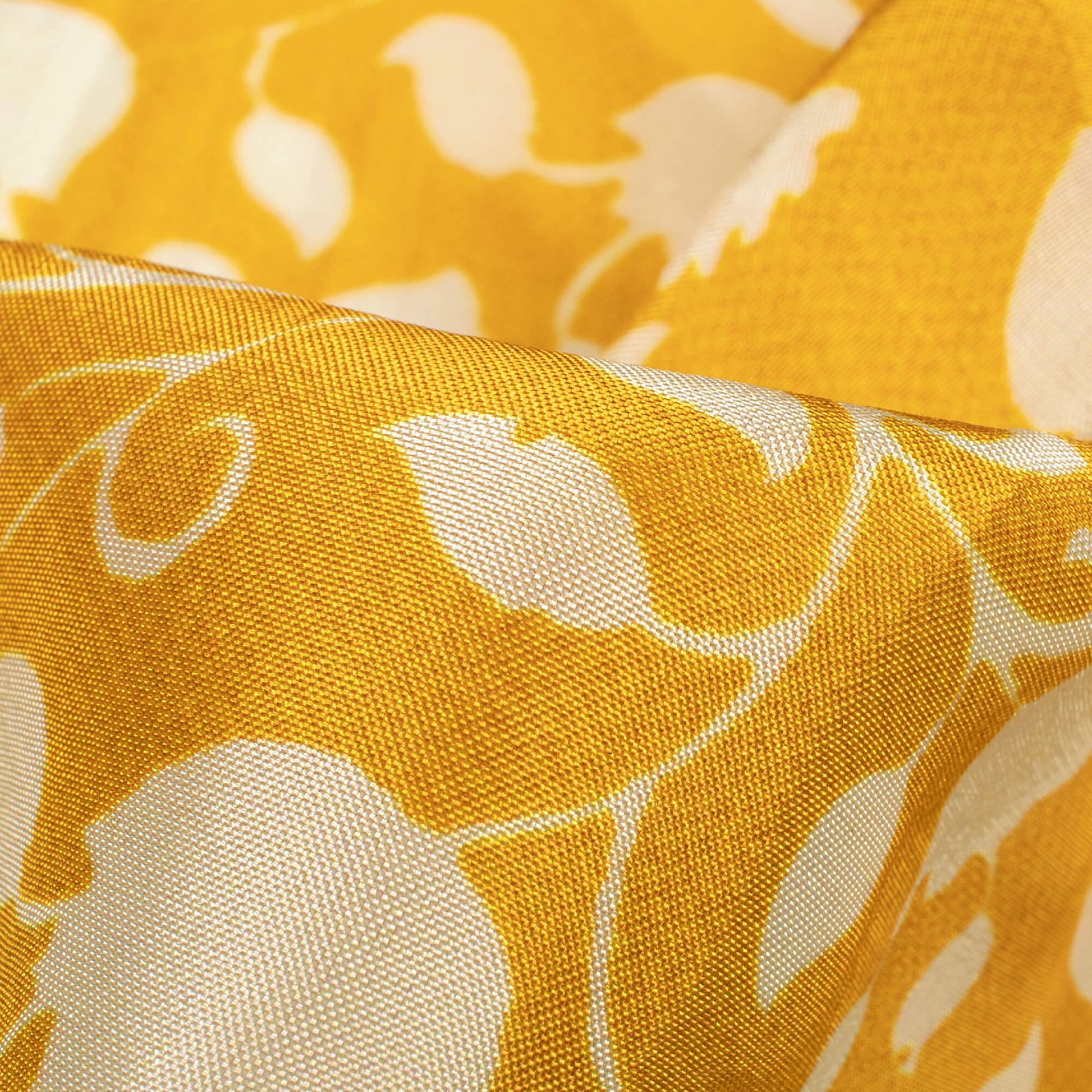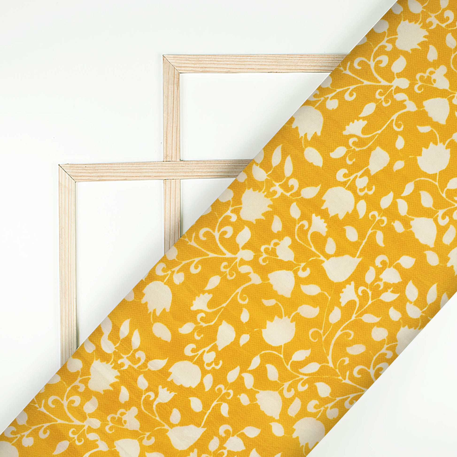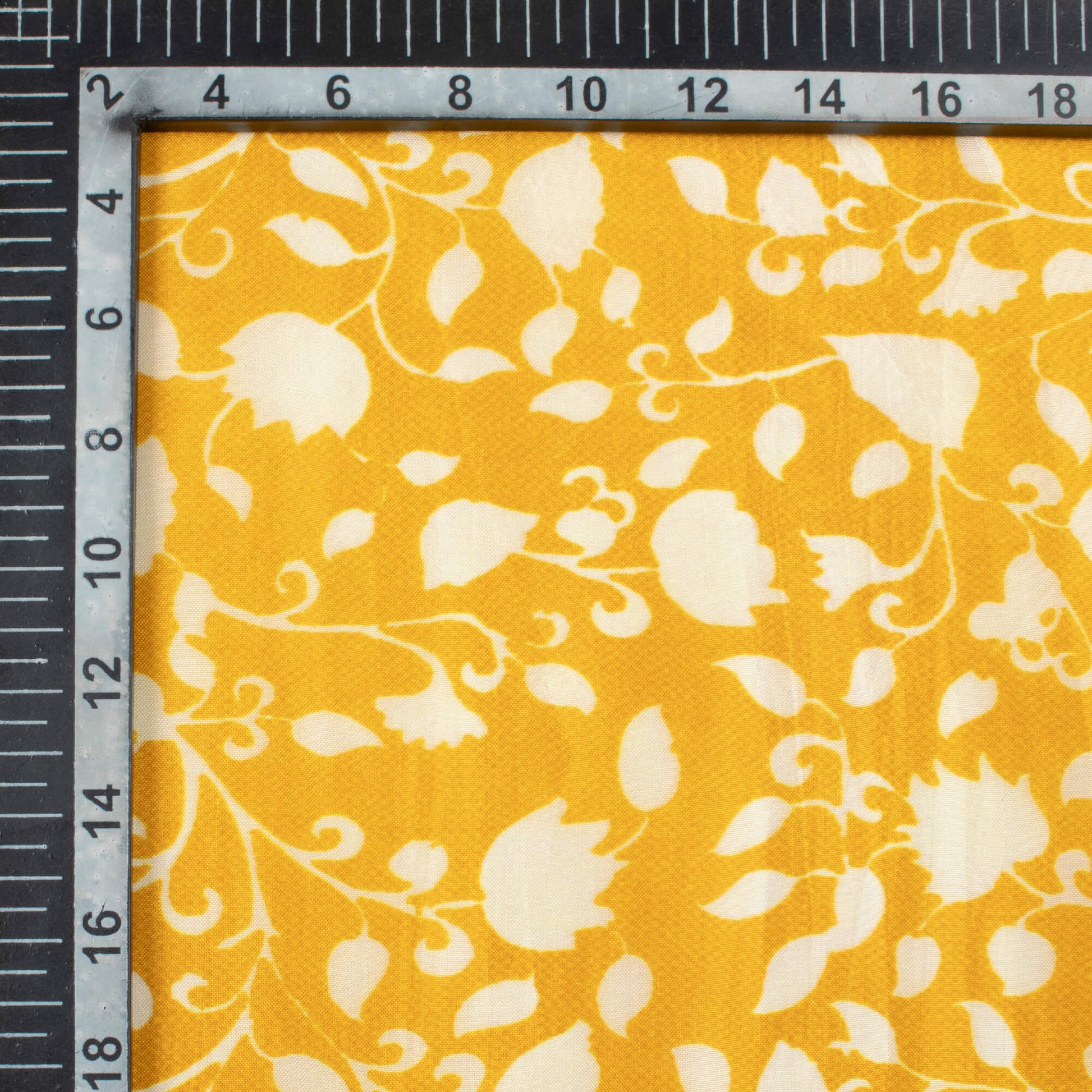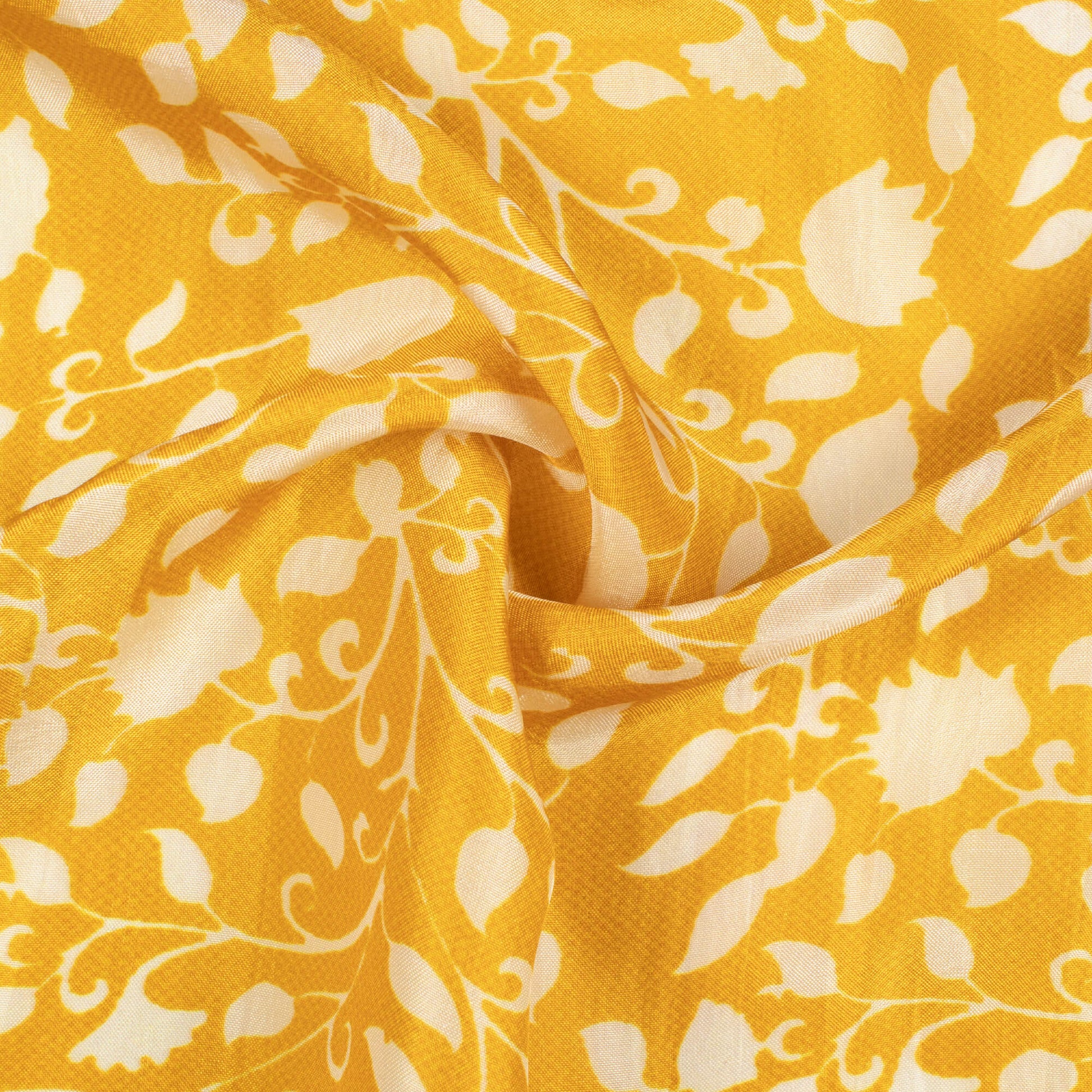 Ochre Yellow And Off White Leaf Pattern Digital Print Viscose Uppada Silk Fabric