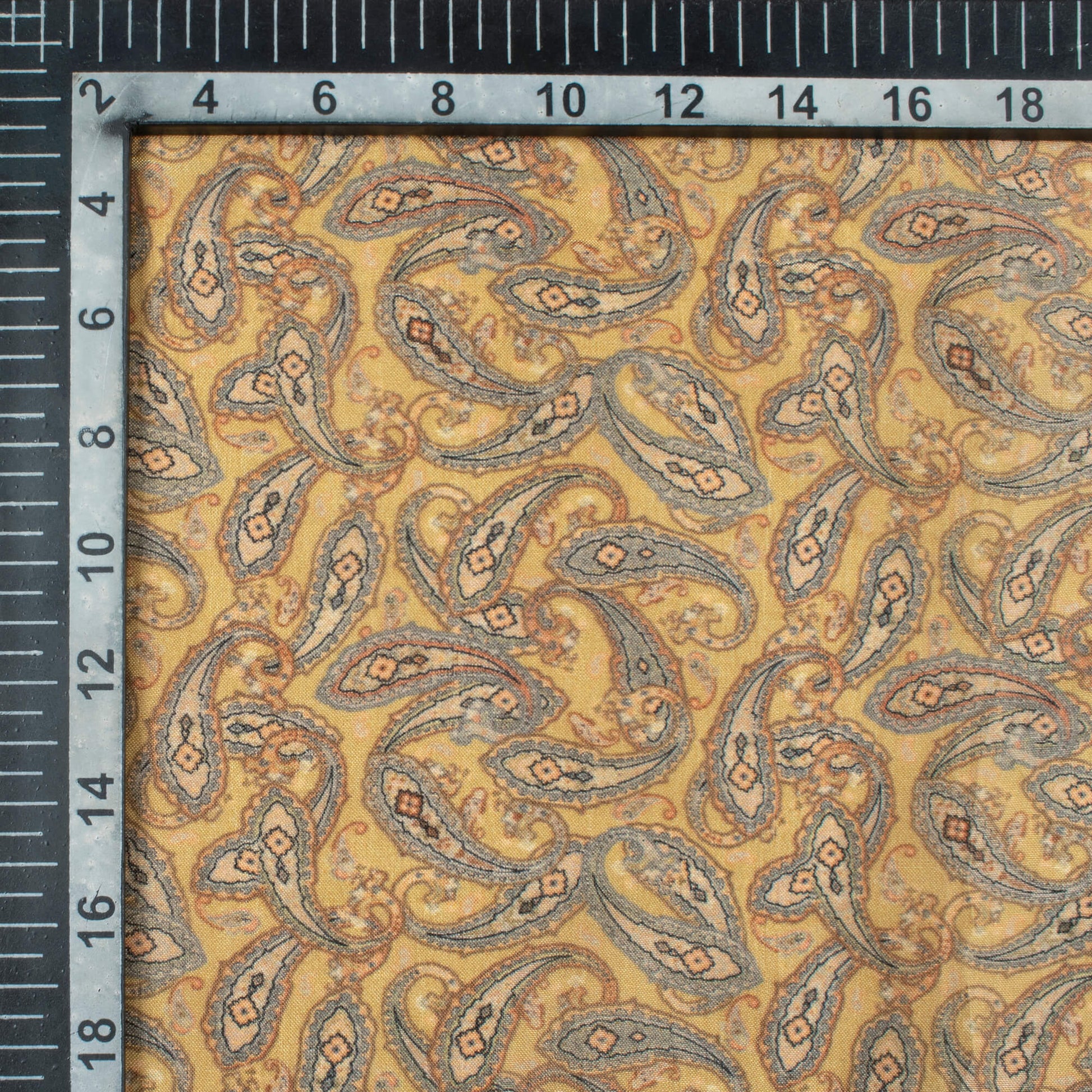 Ochre Yellow And Seal Grey Paisley Pattern Digital Print Viscose Uppada Silk Fabric