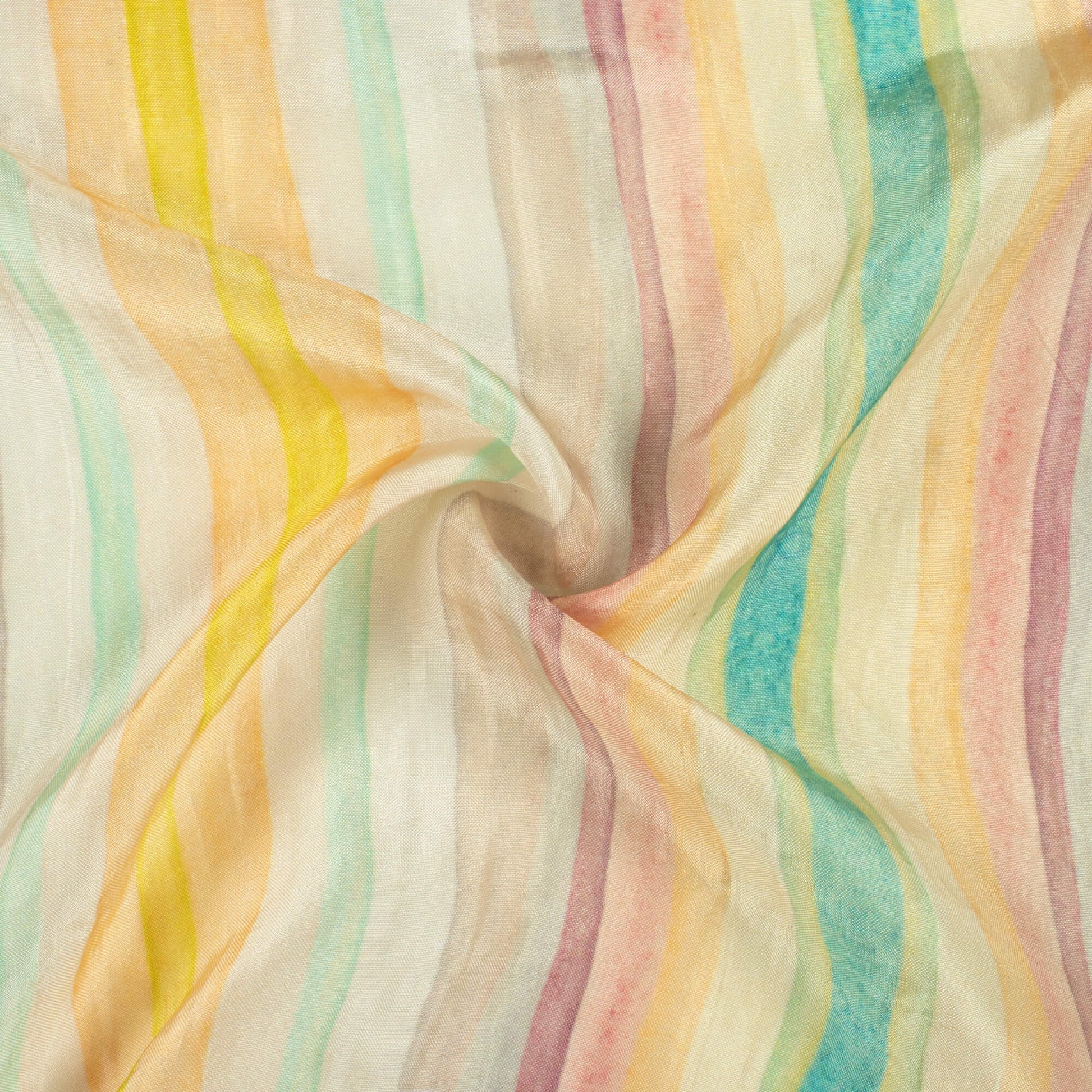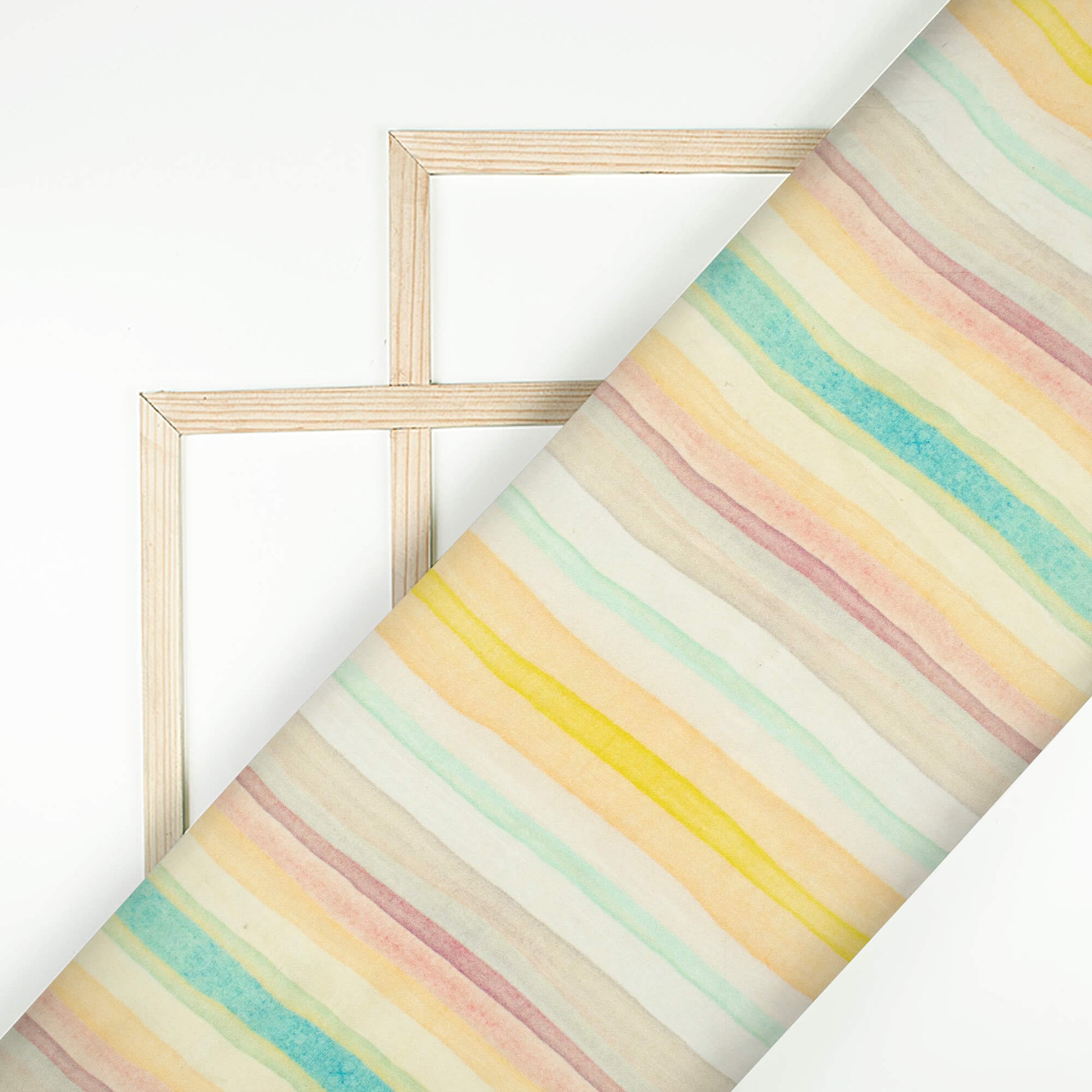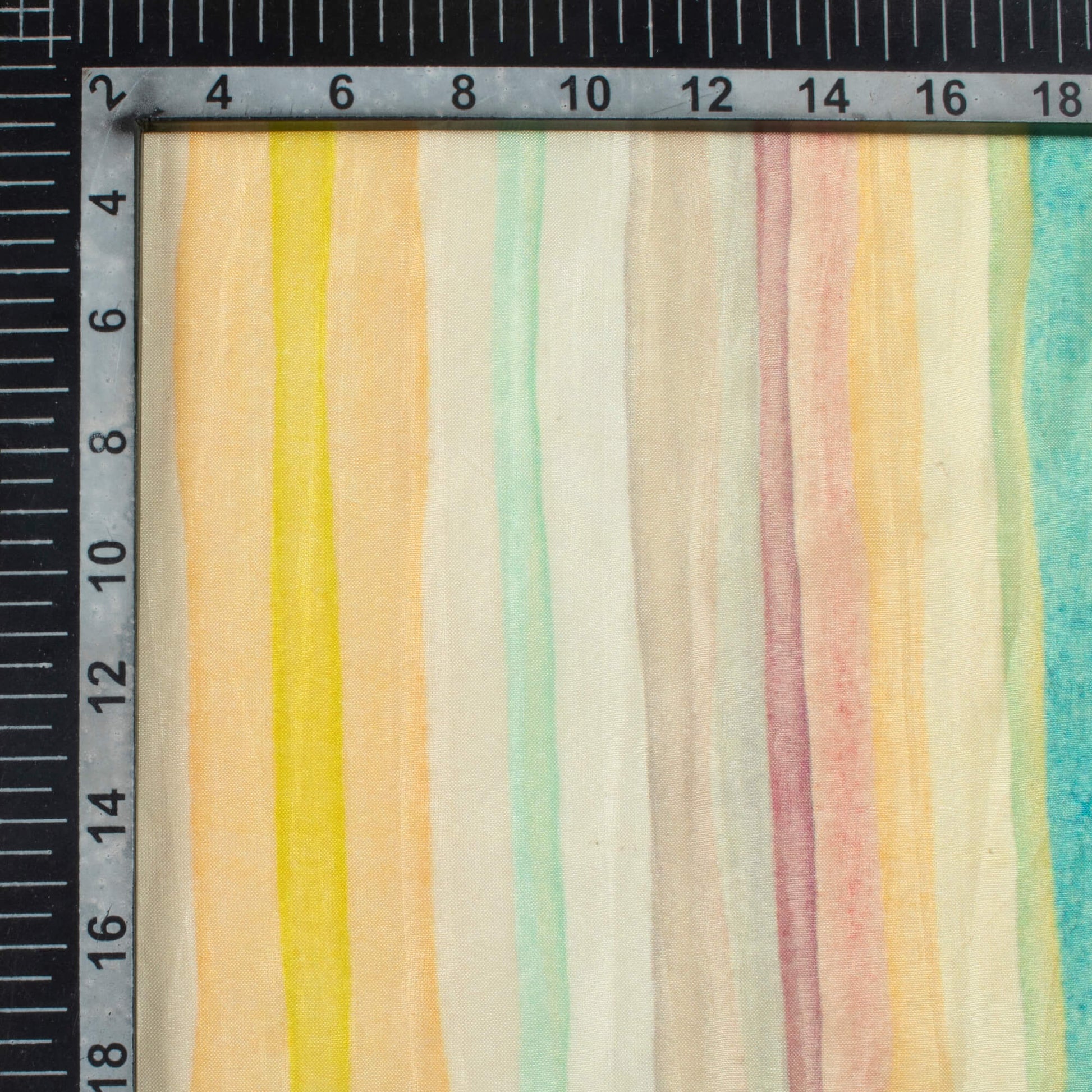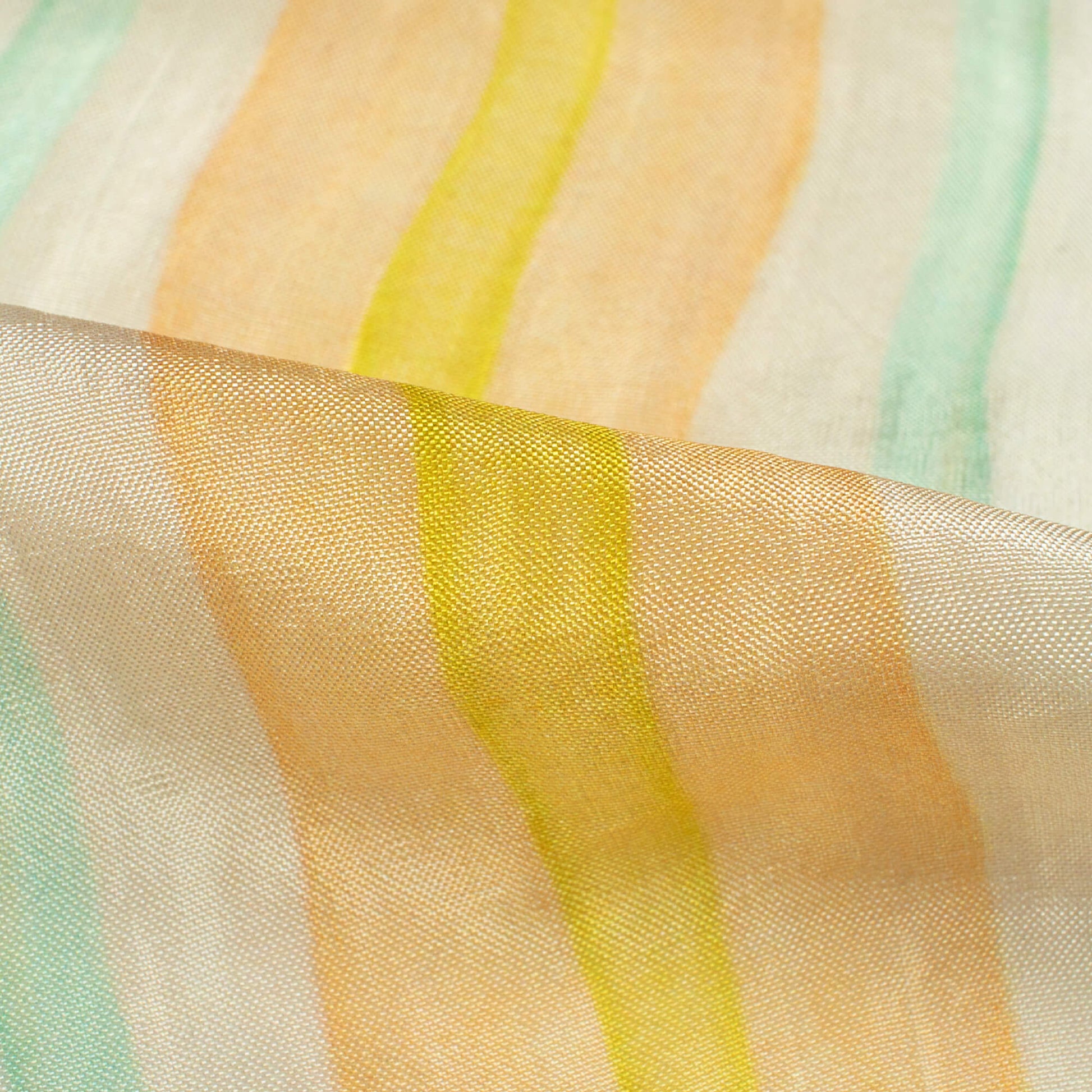 Off White And Pastel Orange Stripes Pattern Digital Print Viscose Uppada Silk Fabric