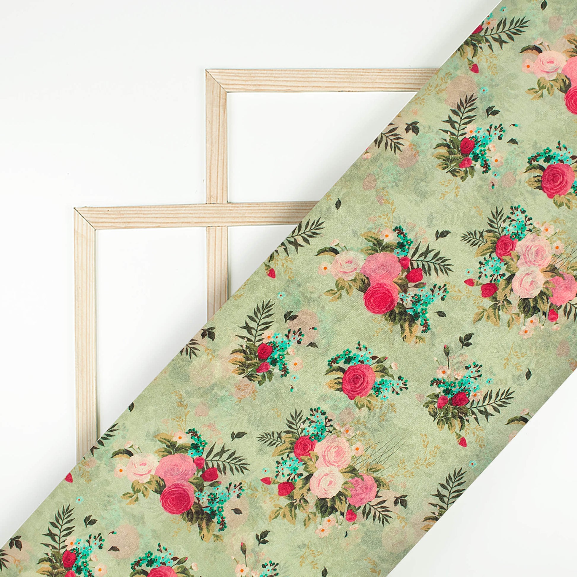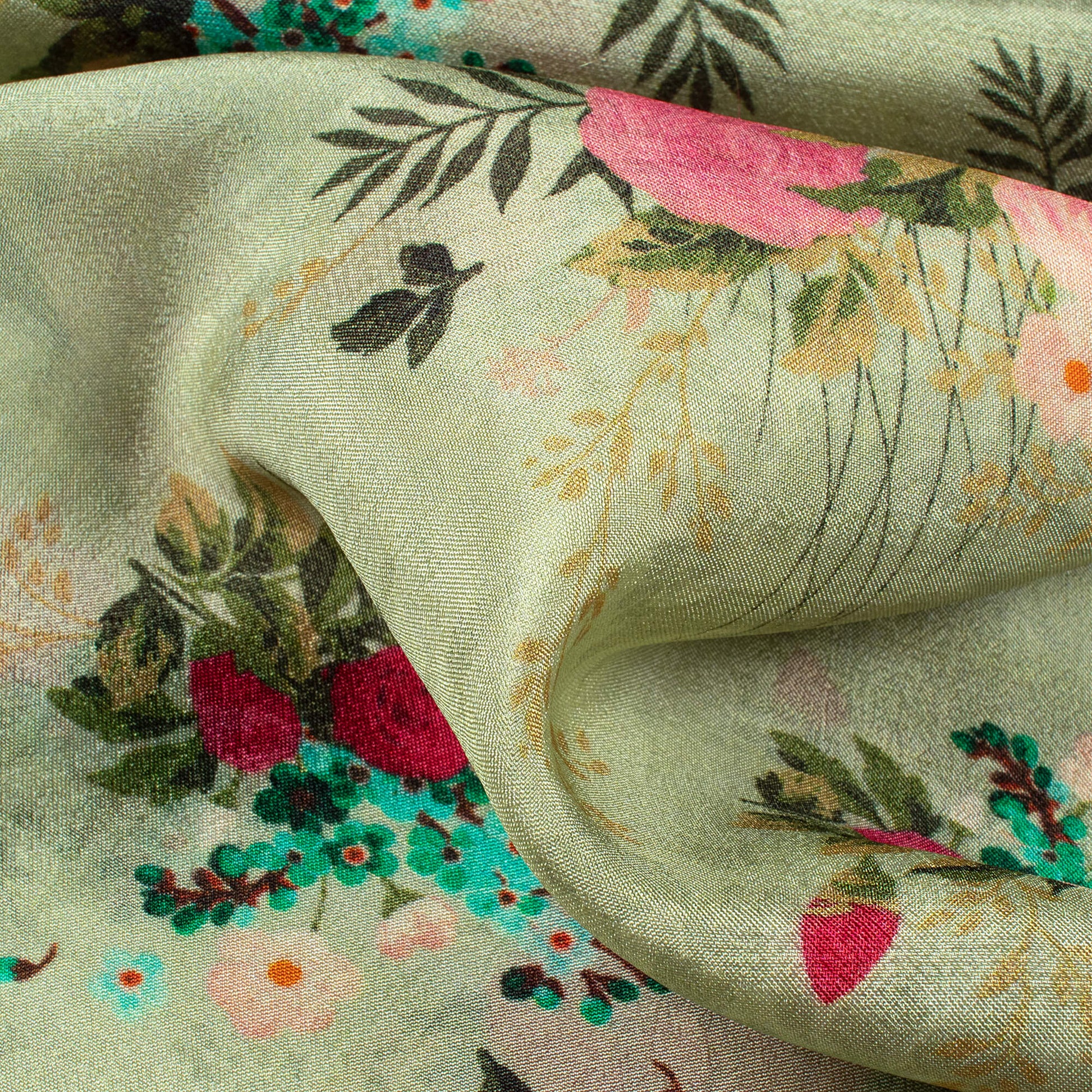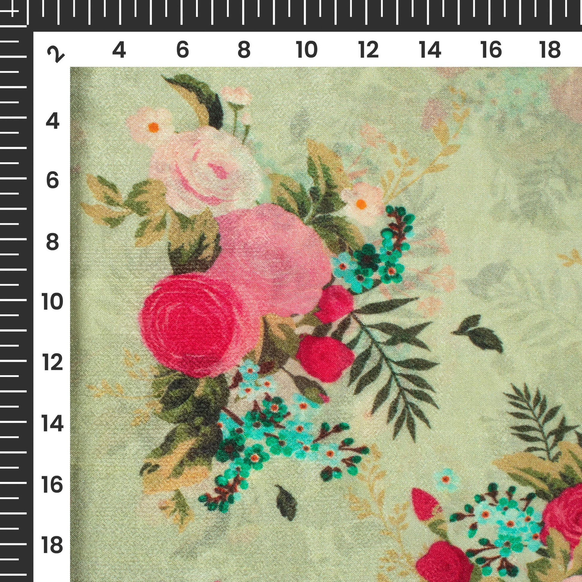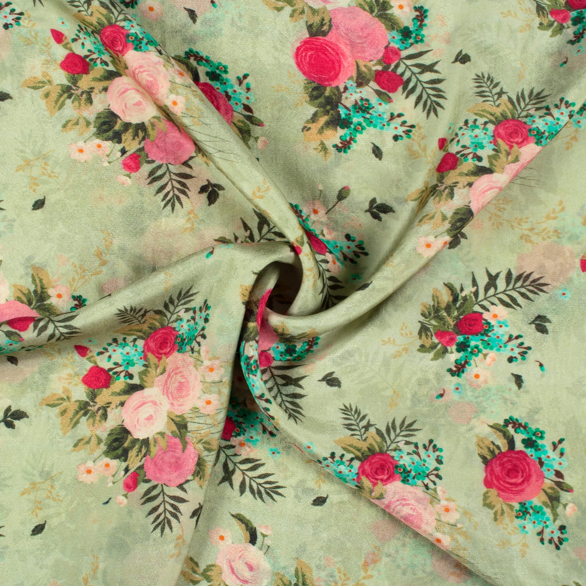 Pastel Green Floral Pattern Digital Print Viscose Uppada Silk Fabric
