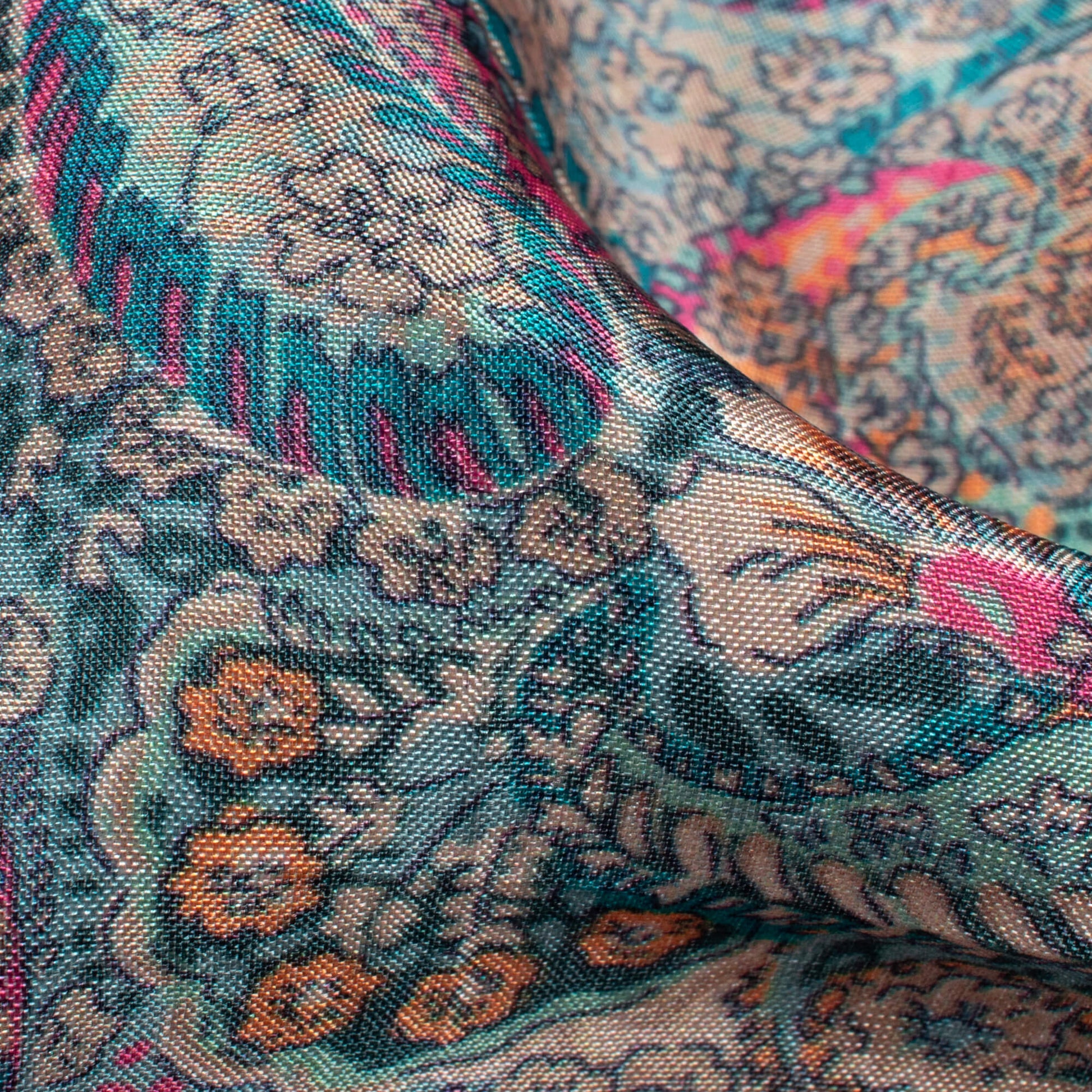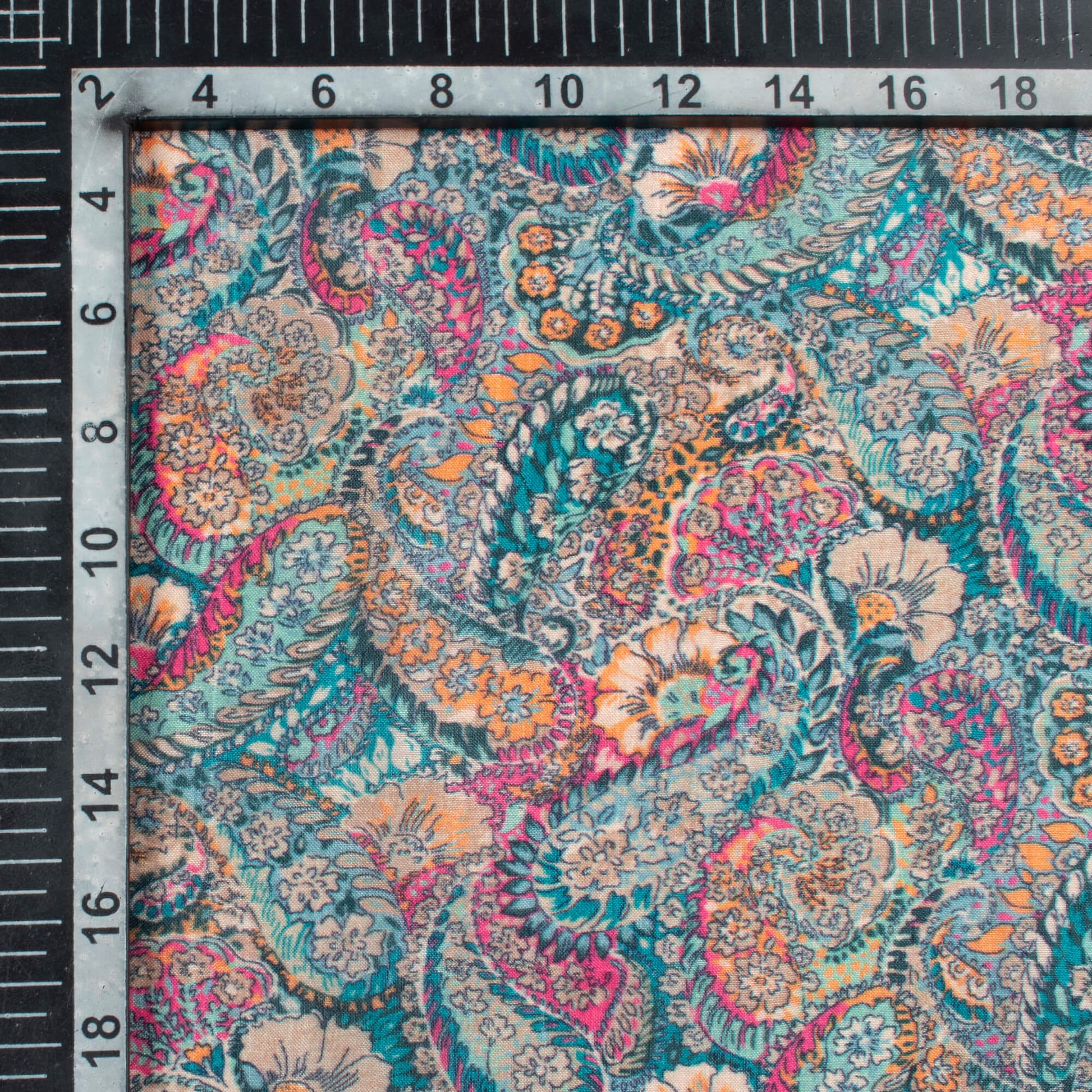 Pine Green And Pink Paisley Pattern Digital Print Viscose Uppada Silk Fabric