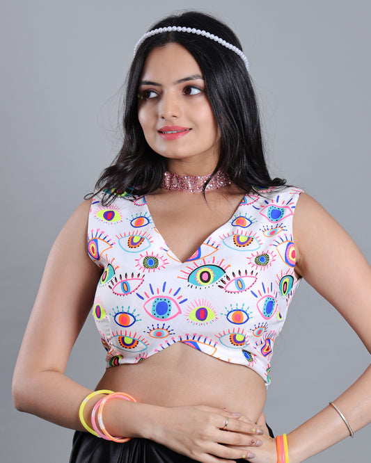 -20% offCrafted For Confidence: Sleeveless Ikkat Print Blouse Crafted For Confidence: Sleeveless Ikkat Print Blouse