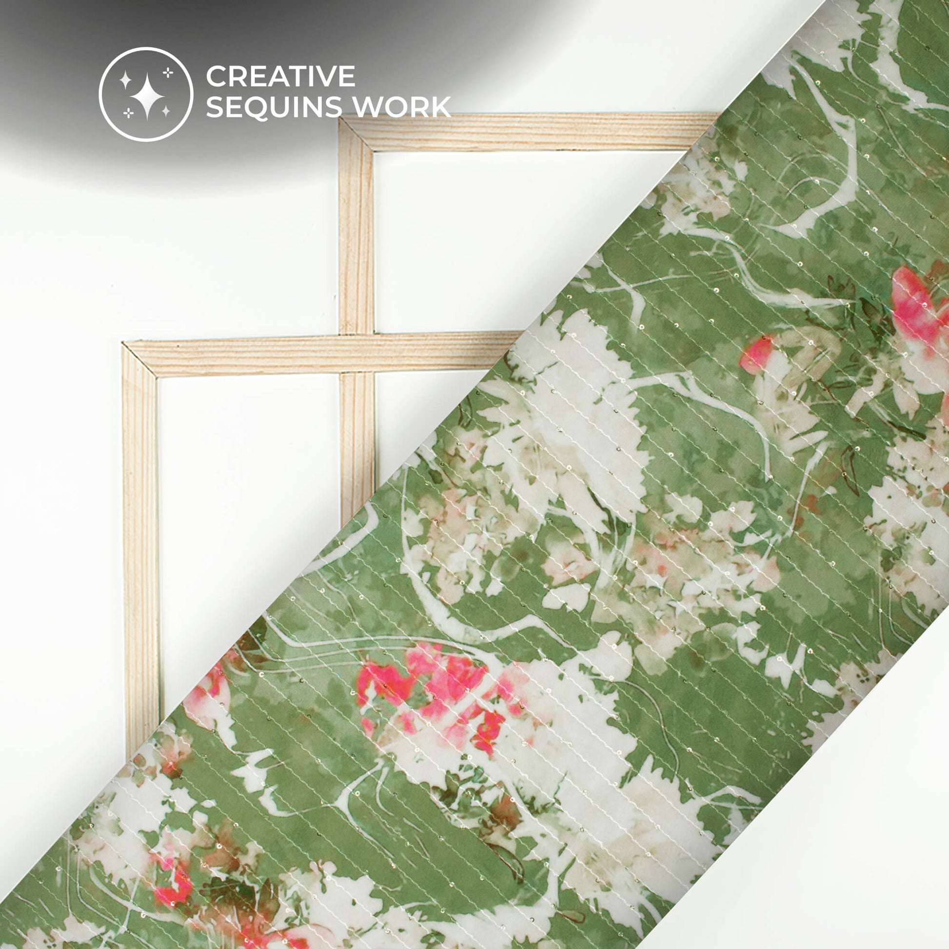 Beautiful Floral Digital Print Superior Sequins Velvet Fabric (Width 58 Inches)