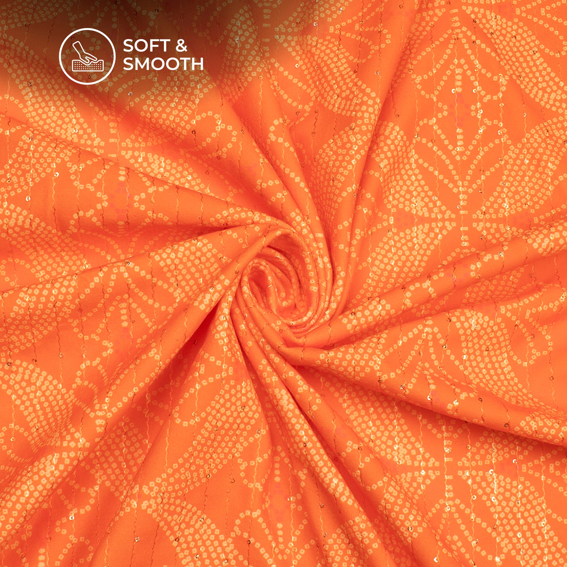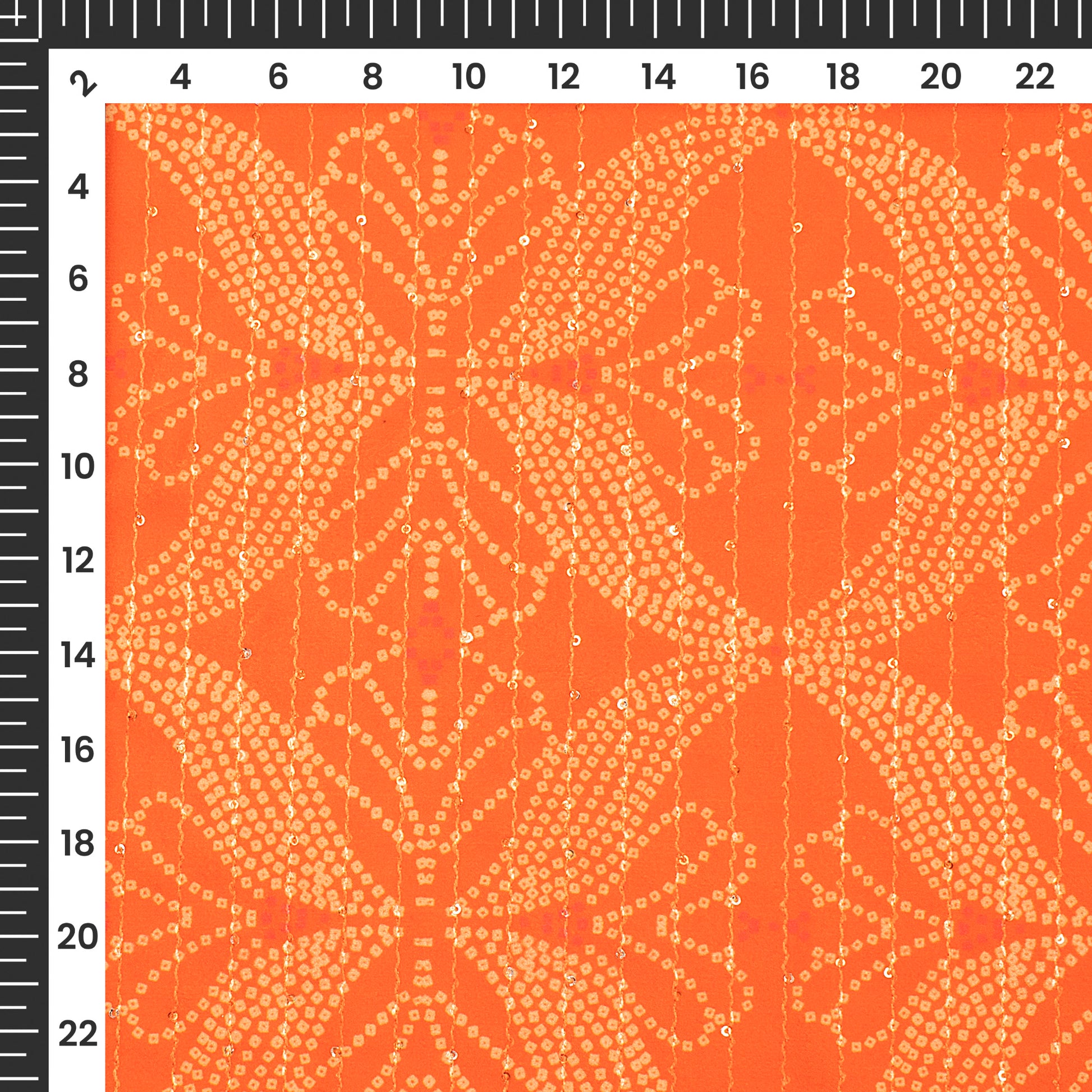 Orange Bandhanii Digital Print Superior Sequins Velvet Fabric (Width 58 Inches)