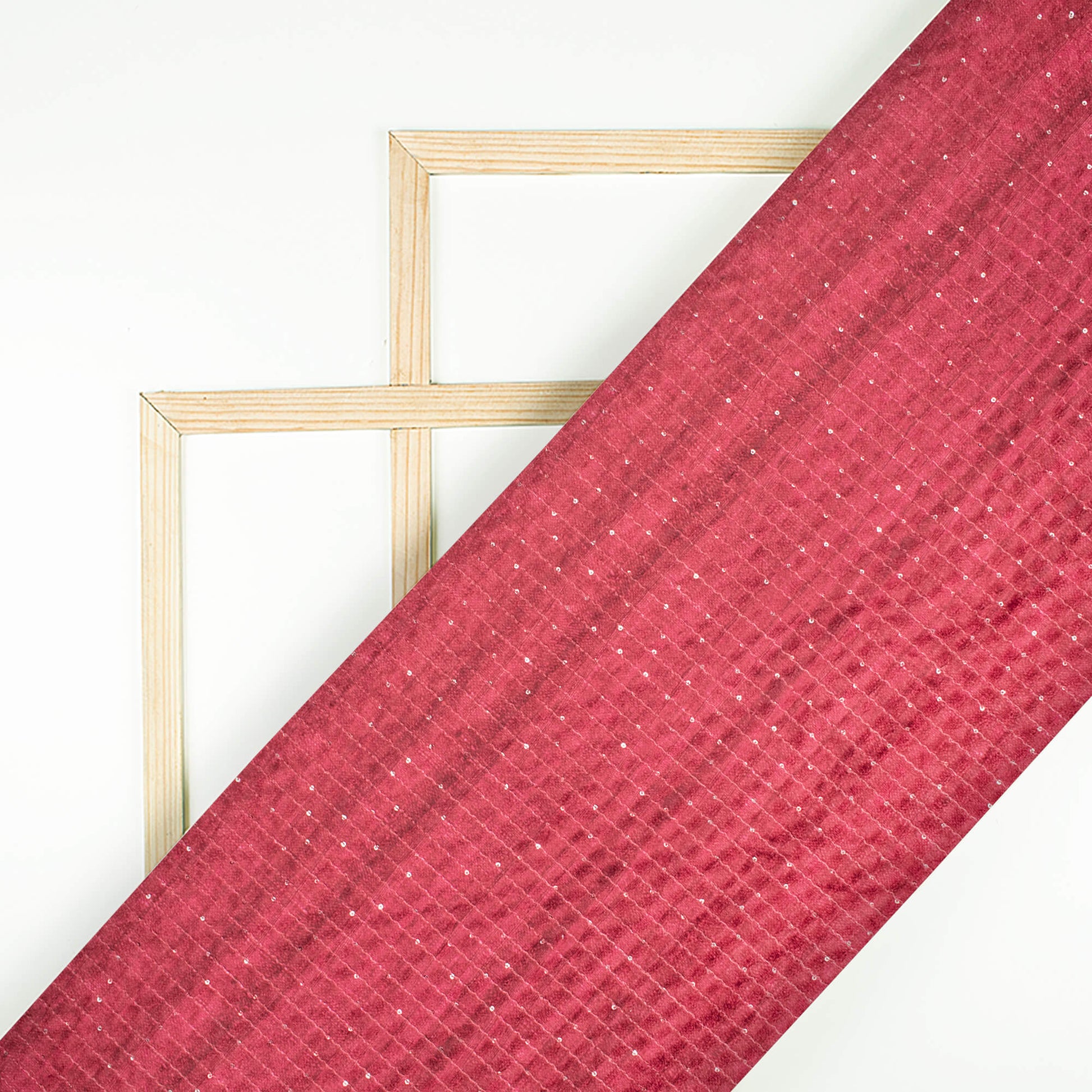 Sangria Red Textured Pattern Sequins Digital Print Superior Velvet Fabric (Width 58 Inches)