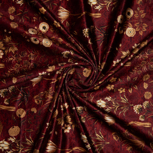 Maroon Floral Pattern Digital Print Velvet Fabric (Width 58 inches) Maroon Floral Pattern Digital Print Velvet Fabric (Width 58 inches)