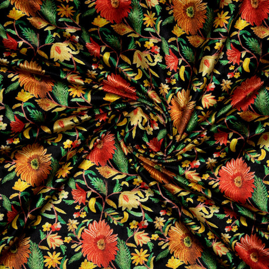 -8% offBlack Floral Pattern Digital Print Velvet Fabric (Width 58 inches) Black Floral Pattern Digital Print Velvet Fabric (Width 58 inches)