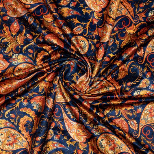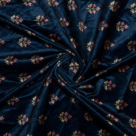 -8% offNavy Blue Floral Booti Pattern Digital Print Velvet Fabric (Width 58 inches) Navy Blue Floral Booti Pattern Digital Print Velvet Fabric (Width 58 inches)