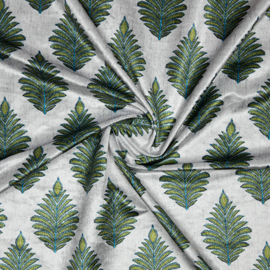 Olive And Light Grey Mugal Pattern Digital Print Velvet Fabric (Width 58 inches) Olive And Light Grey Mugal Pattern Digital Print Velvet Fabric (Width 58 inches)
