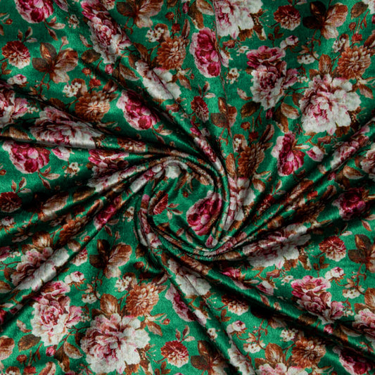 Green Floral Pattern Digital Print Velvet Fabric (Width 58 inches) Green Floral Pattern Digital Print Velvet Fabric (Width 58 inches)