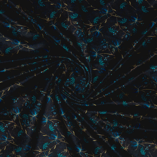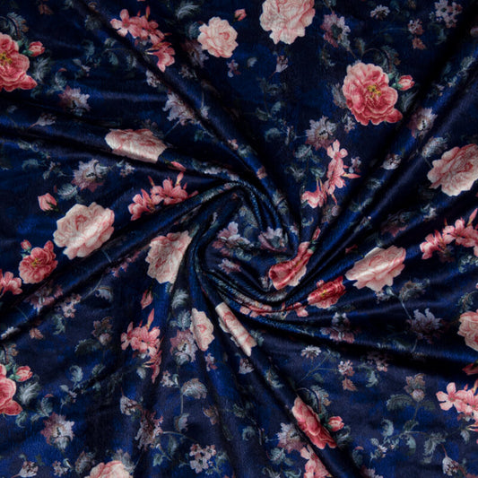 Navy Blue Floral Pattern Digital Print Velvet Fabric (Width 58 inches) Navy Blue Floral Pattern Digital Print Velvet Fabric (Width 58 inches)