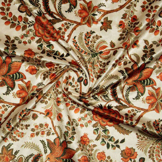 -8% offCream And Brown Floral Pattern Digital Print Velvet Fabric (Width 58 inches) Cream And Brown Floral Pattern Digital Print Velvet Fabric (Width 58 inches)