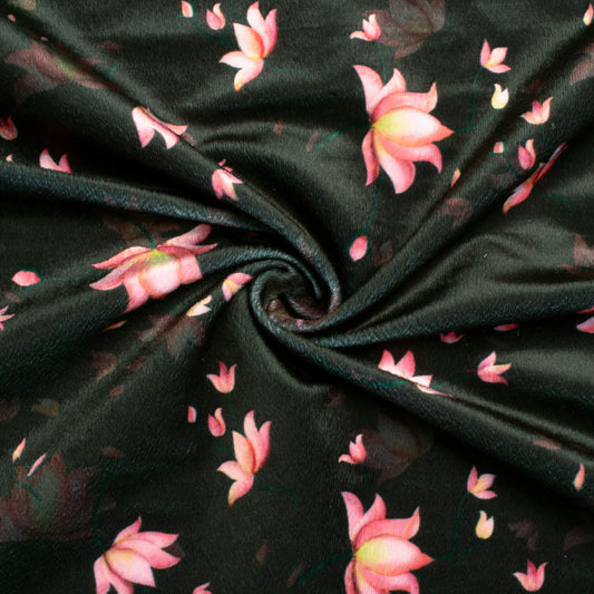 Dark Green And Rose Pink Floral Pattern Digital Print Velvet Fabric (Width 58 Inches) Dark Green And Rose Pink Floral Pattern Digital Print Velvet Fabric (Width 58 Inches)