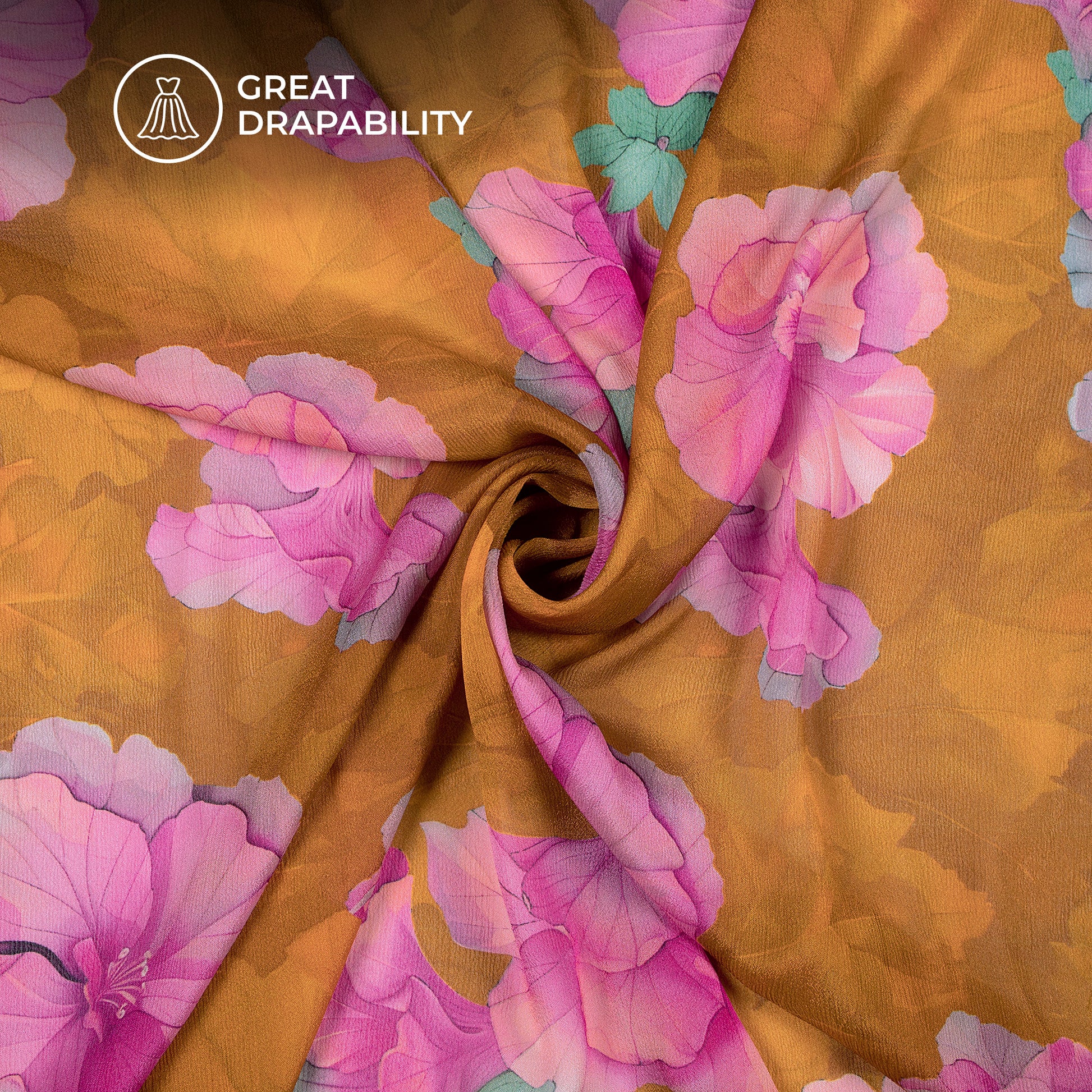 Bloosom Floral Digital Print Viscose Chinnon Chiffon Fabric For DIY Designers