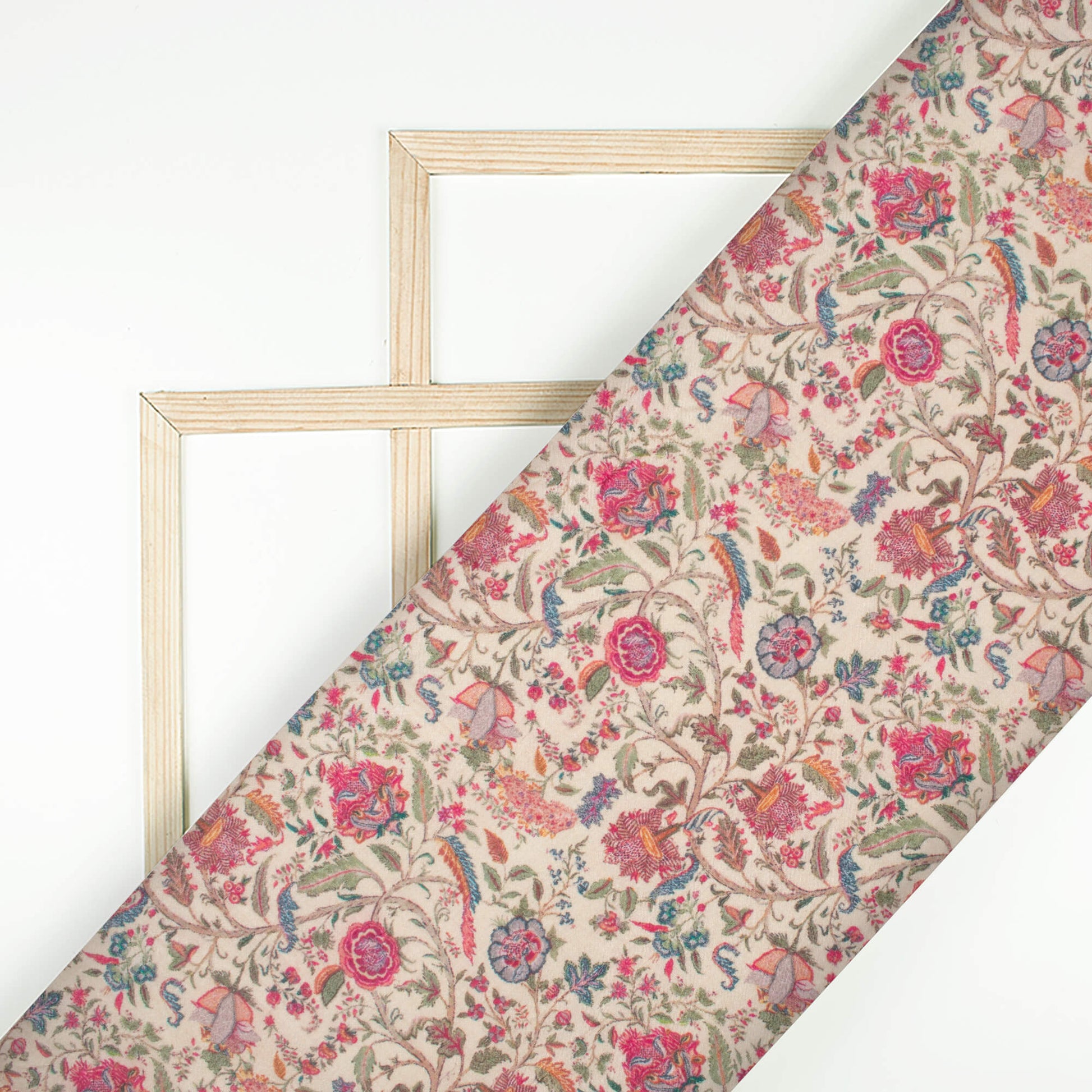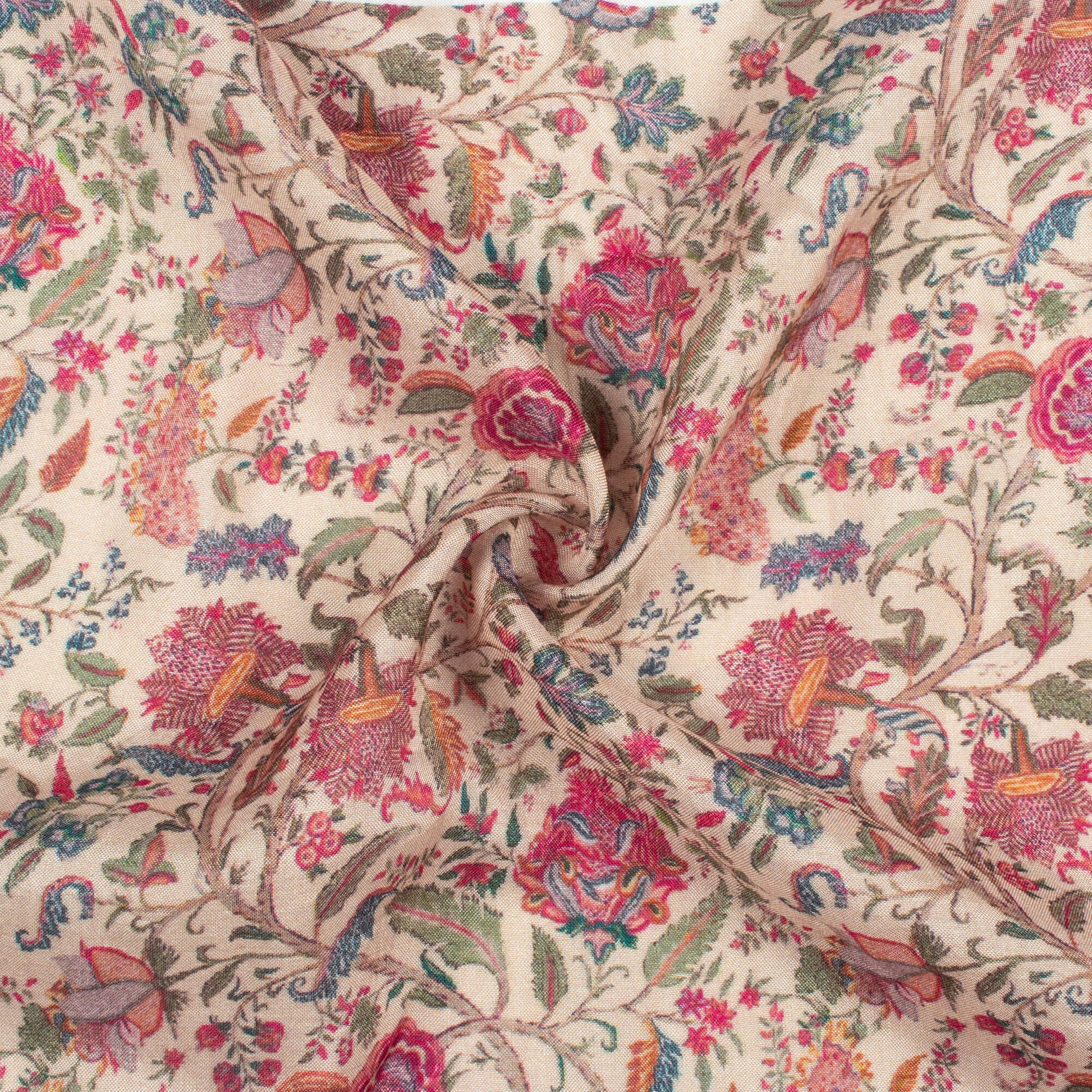 Cream And Sangria Purple Floral Pattern Digital Print Viscose Muslin Fabric