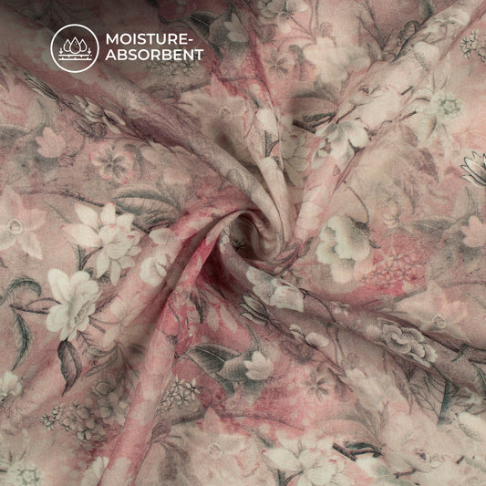 -11% offTaffy Pink And Beige Floral Digital Print Pure Cotton Mulmul Fabric Taffy Pink And Beige Floral Digital Print Pure Cotton Mulmul Fabric