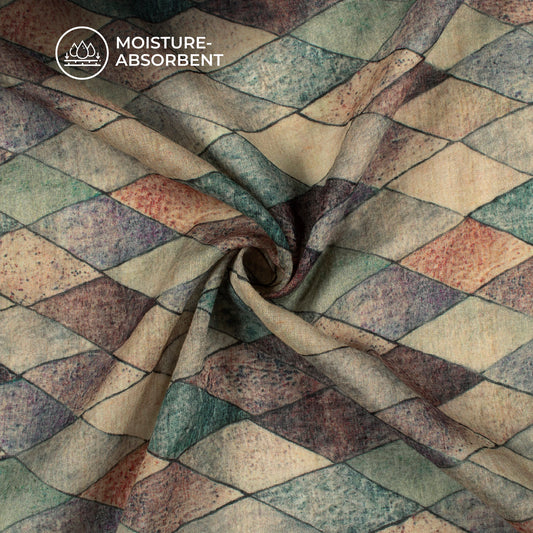 -11% offSage Green And Beige Geometric Digital Print Pure Cotton Mulmul Fabric Sage Green And Beige Geometric Digital Print Pure Cotton Mulmul Fabric