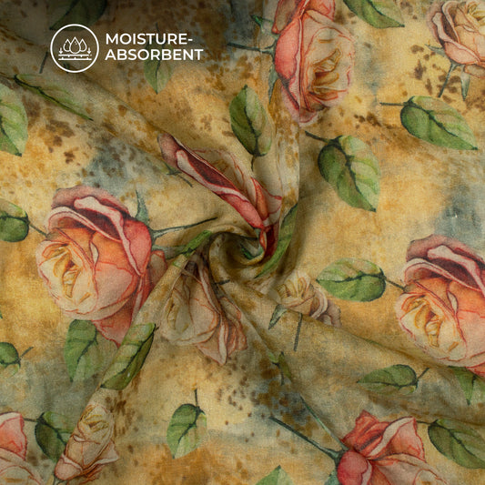 -11% offBanana Yellow And Beige Floral Digital Print Pure Cotton Mulmul Fabric Banana Yellow And Beige Floral Digital Print Pure Cotton Mulmul Fabric