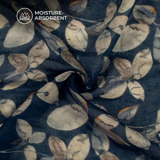 -11% offNavy Blue And Beige Leaf Digital Print Pure Cotton Mulmul Fabric Navy Blue And Beige Leaf Digital Print Pure Cotton Mulmul Fabric