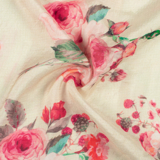 -9% offCream And Rose Red Floral Pattern Digital Print Viscose Muslin Fabric Cream And Rose Red Floral Pattern Digital Print Viscose Muslin Fabric