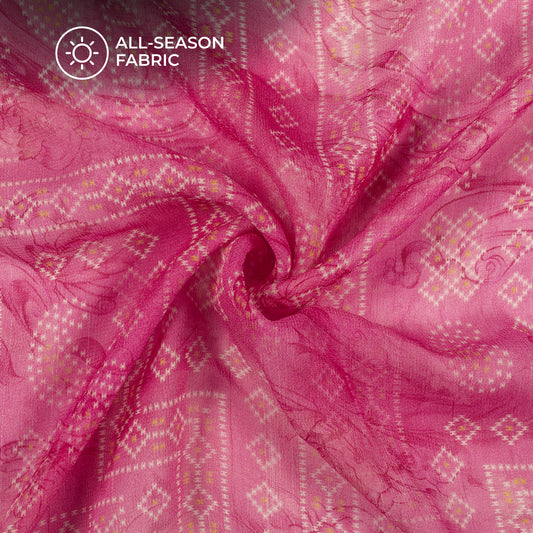 Hot Pink And White Bandhanii Digital Print Pure Georgette Fabric Hot Pink And White Bandhanii Digital Print Pure Georgette Fabric