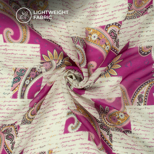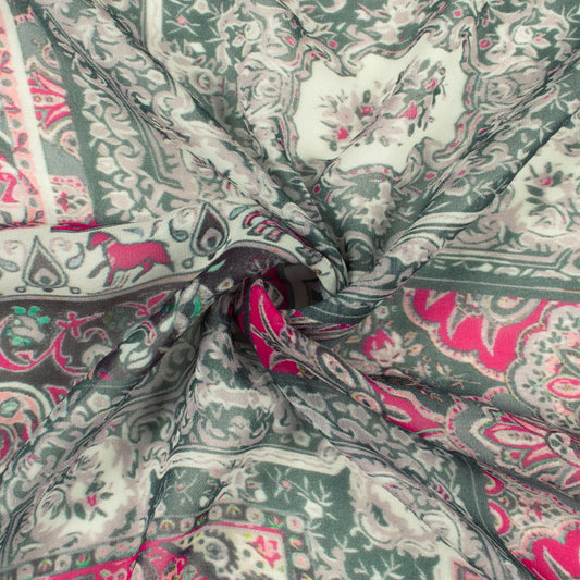Magenta Pink And Green Patch Digital Print Pure Georgette Fabric Magenta Pink And Green Patch Digital Print Pure Georgette Fabric