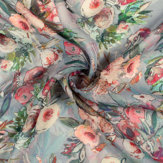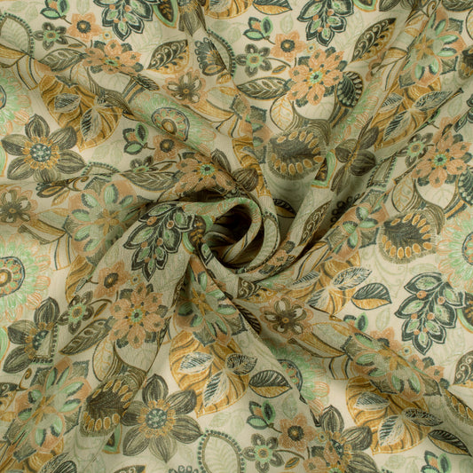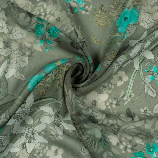 Gray Green Floral Digital Print Viscose Georgette Fabric Gray Green Floral Digital Print Viscose Georgette Fabric
