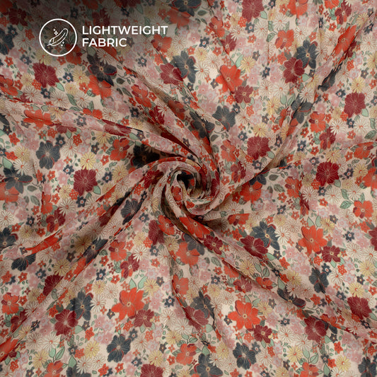 Red And Orange Floral Digital Print Pure Georgette Fabric Red And Orange Floral Digital Print Pure Georgette Fabric