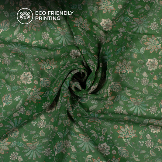 Dark Green Floral Digital Print Pure Georgette Fabric Dark Green Floral Digital Print Pure Georgette Fabric