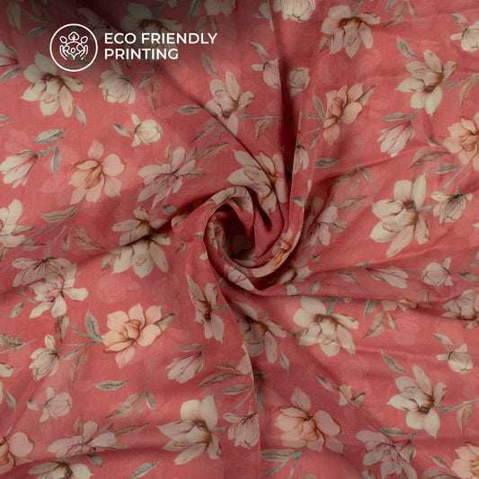 Salmon Pink And Cream Floral Digital Print Pure Georgette Fabric Salmon Pink And Cream Floral Digital Print Pure Georgette Fabric