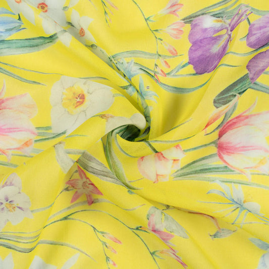 Amber Yellow Floral Digital Print Pure Georgette Fabric Amber Yellow Floral Digital Print Pure Georgette Fabric