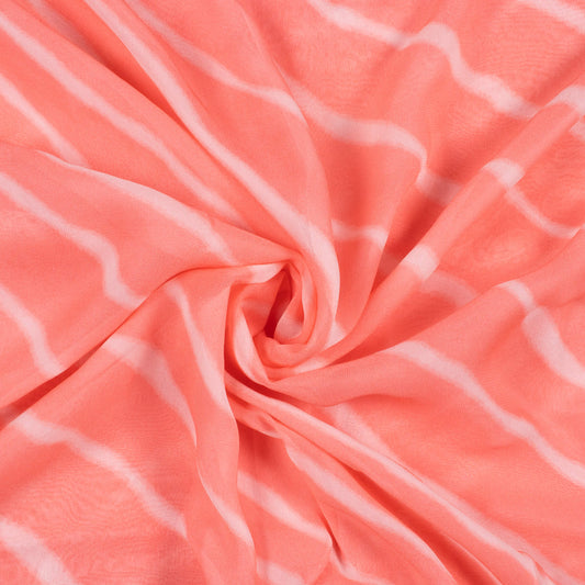 Salmon Pink And White Leheriya Pattern Digital Print Pure Georgette Fabric Salmon Pink And White Leheriya Pattern Digital Print Pure Georgette Fabric