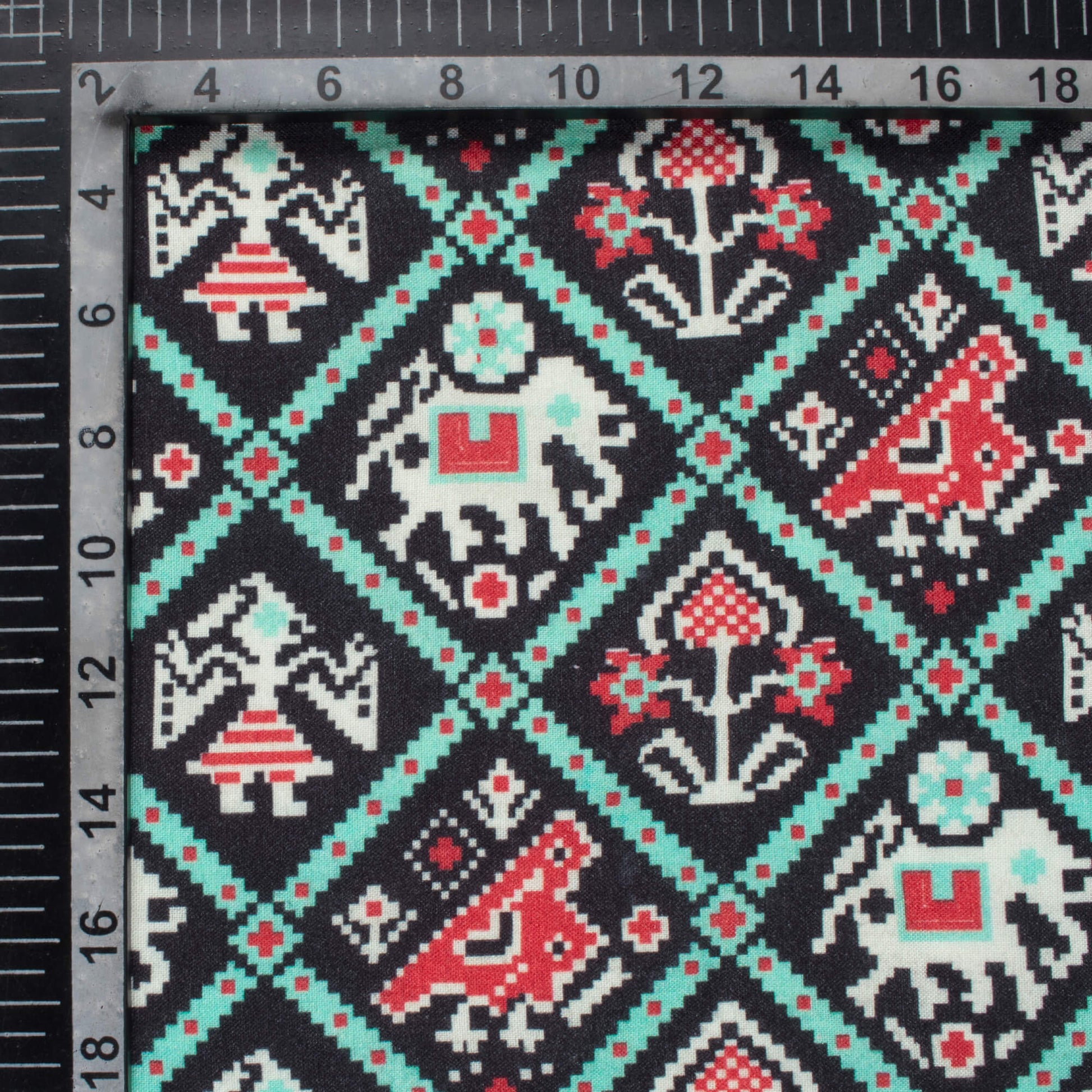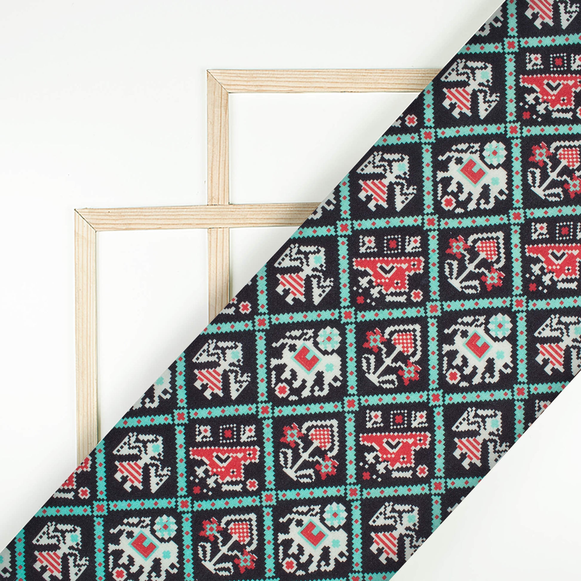 Black And Sky Blue Patolaa Pattern Digital Print Viscose Rayon Fabric (Width 58 Inches)