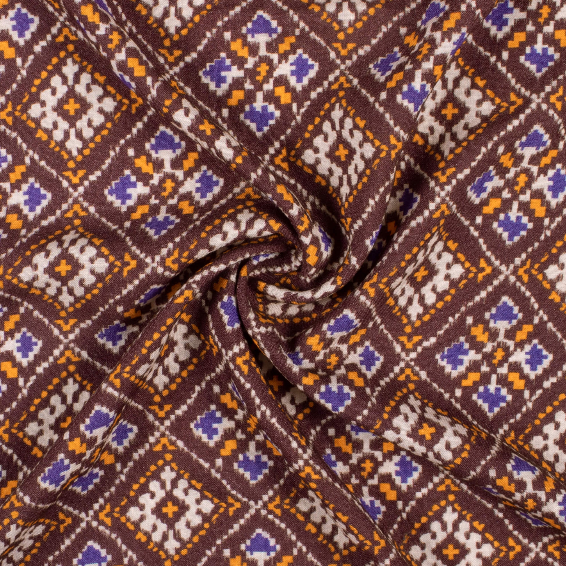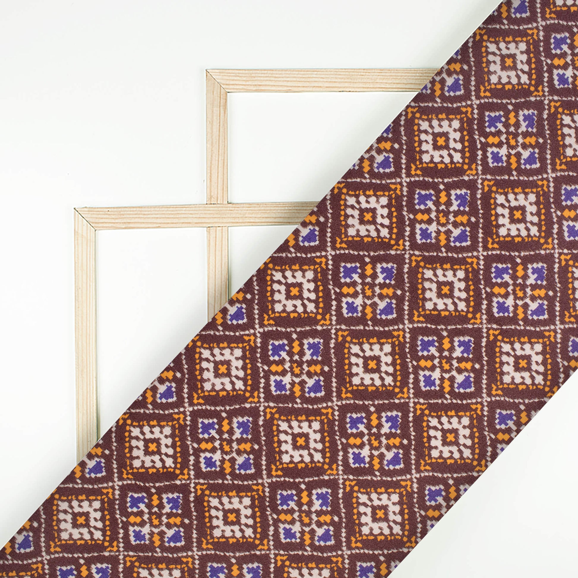 Dark Brown And Royal Orange Patolaa Pattern Digital Print Viscose Rayon Fabric (Width 58 Inches)
