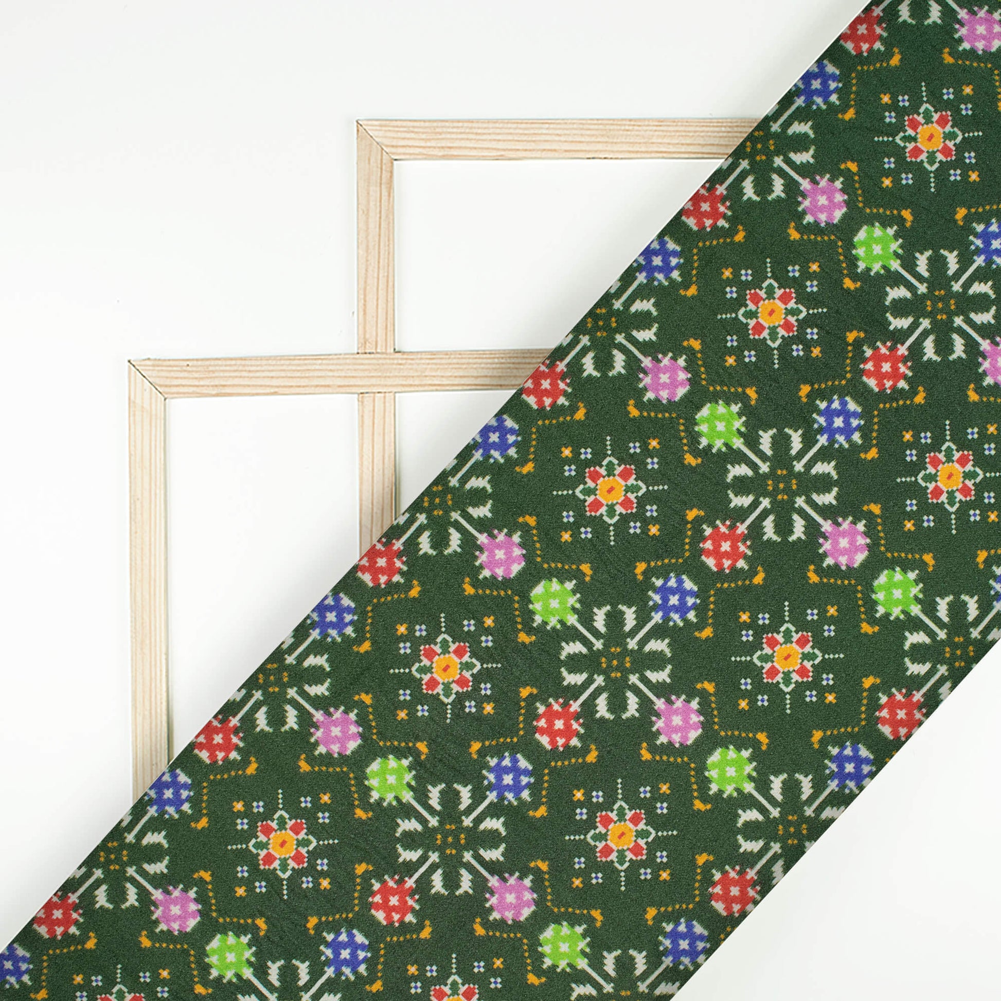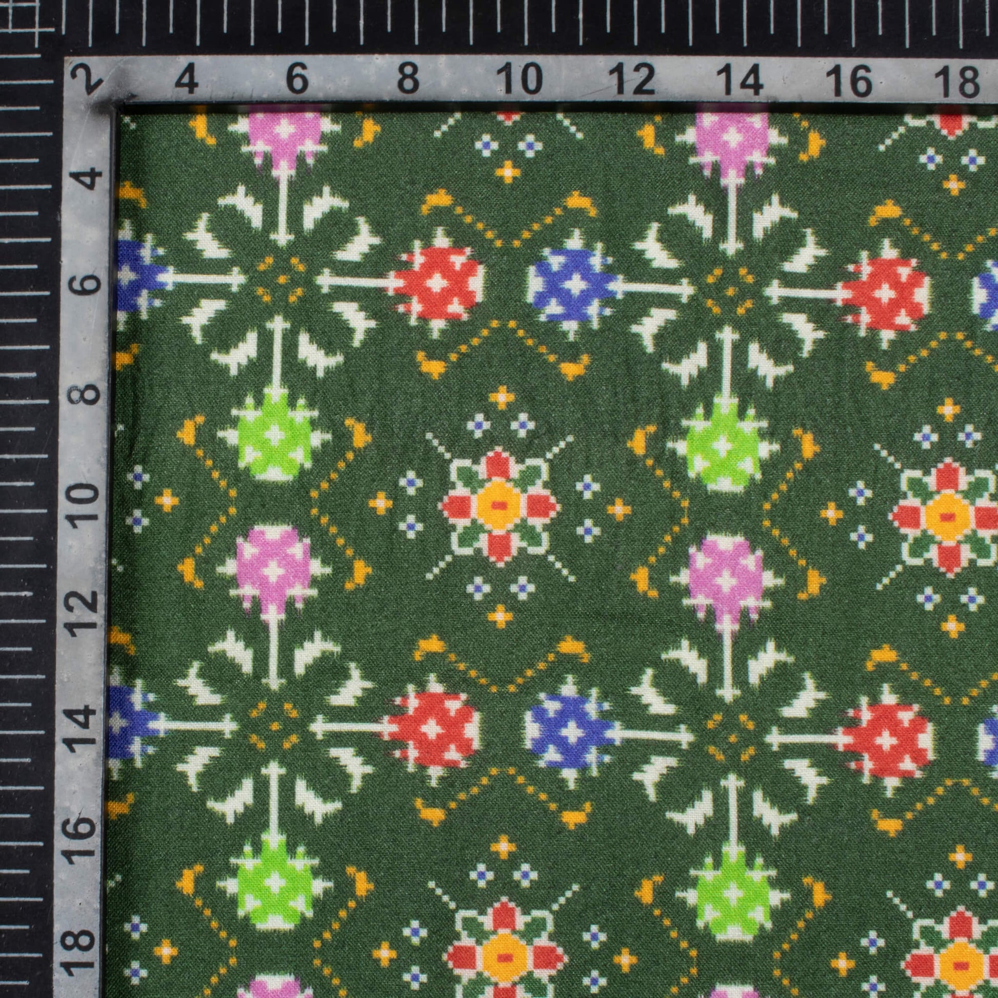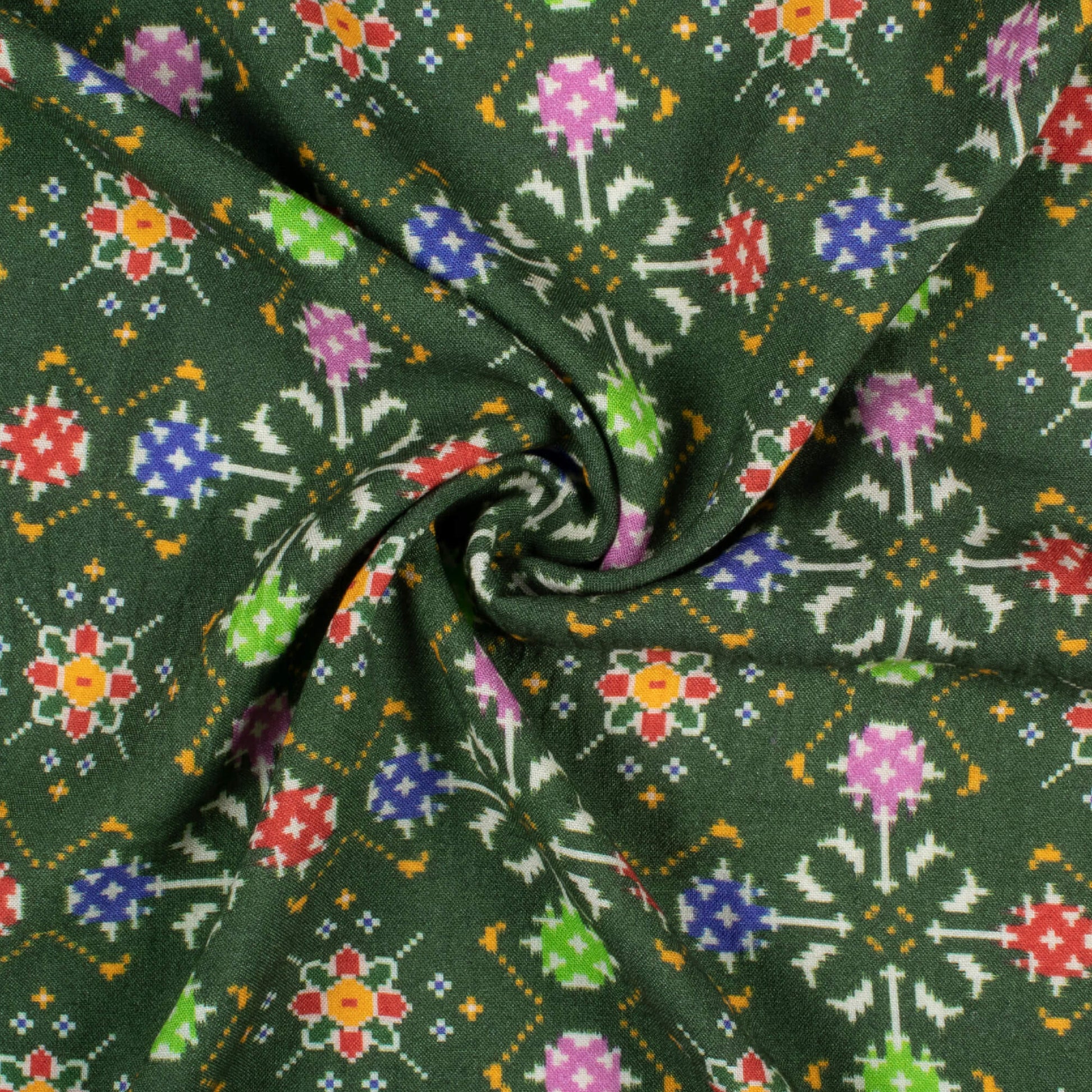 Forest Green And Purple Patolaa Pattern Digital Print Viscose Rayon Fabric (Width 58 Inches)